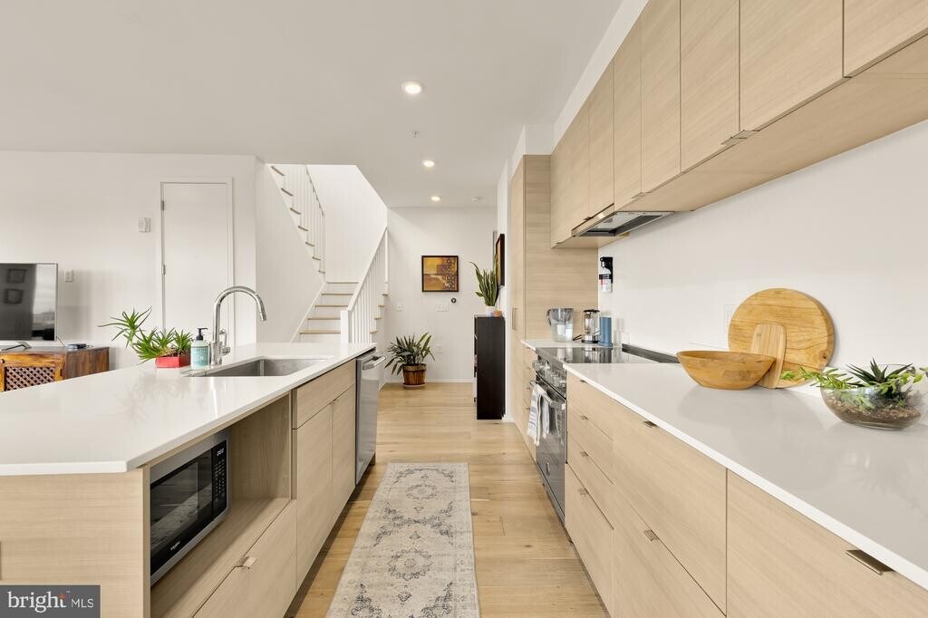 Chic city living in the heart of Logan Circle -- a spacious two-level corner unit with GARAGE PARKING and PRIVATE WRAPAROUND ROOF TERRACE with unobstructed northern, eastern, and western exposures! Welcome to unit 401 at The Holm -- a boutique building boasting the pinnacle of relaxed urban living. Head inside to find over 1800 sqft of living space over two levels. The interior is a masterclass in craftsmanship, presented in pristine condition with custom millwork, five-inch wide-plank hardwood floors with sound-deadening cork, and a gourmet kitchen boasting European frameless cabinetry. Sun-soaked space throughout with an open floor plan perfect for entertaining and floor to ceiling windows offering copious natural light. Head upstairs to find a spacious recreation area overlooking the massive private terrace with turf, home gym, and sprawling greenery -- an ultimate escape from the city below. An additional workshop, a rare find in the city, rounds out the top level. An ideal location with countless restaurants, bars, and shops all steps away. Pet friendly. Available May 1.