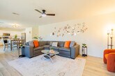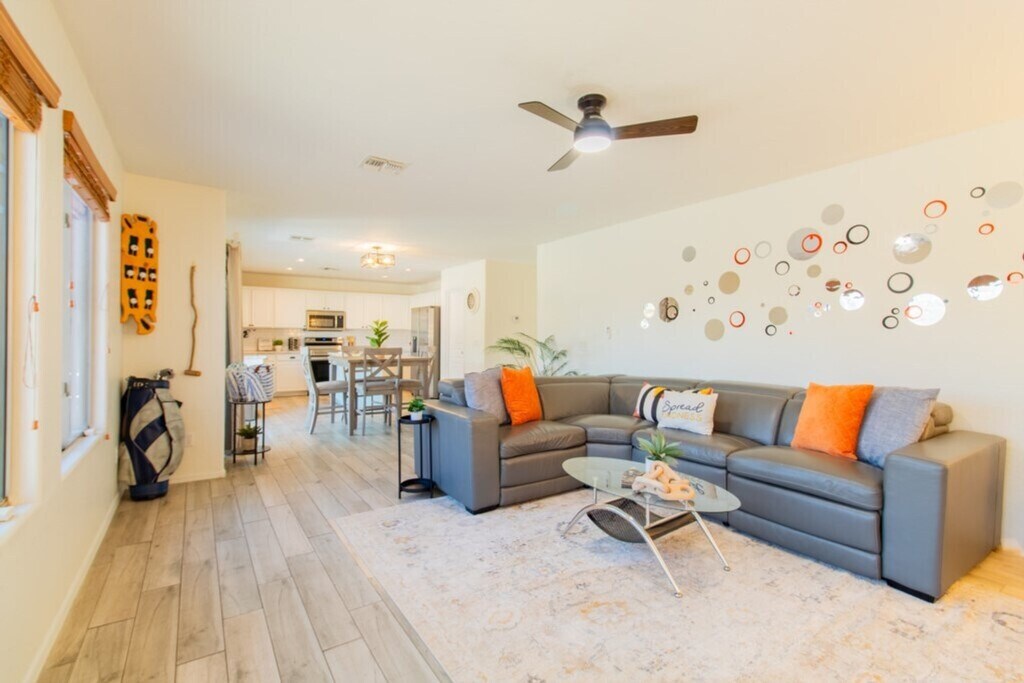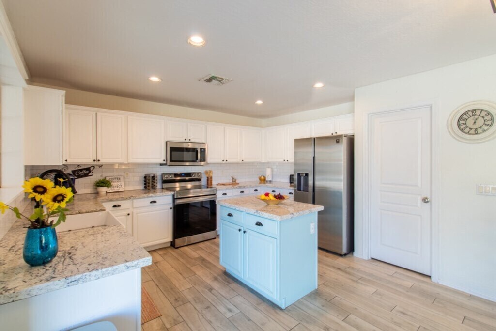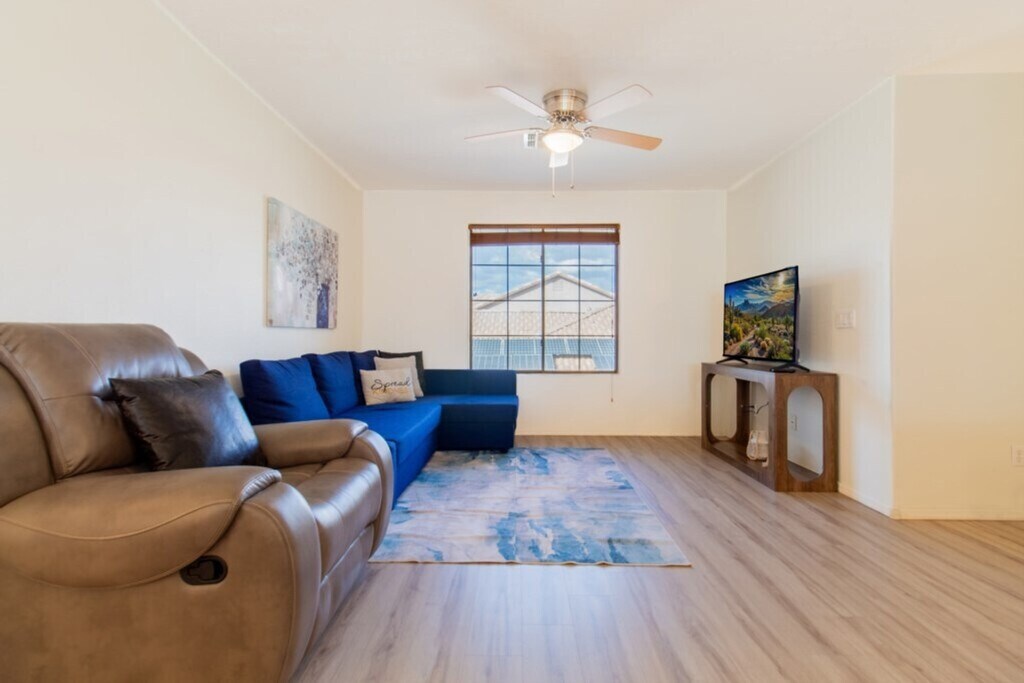 Welcome to your perfect desert escape! This stunning 4-bedroom home in the heart of Casa Grande, AZ, offers a heated pool, piano, and a huge air hockey table for endless fun. Relax in style with modern amenities, a fully equipped kitchen, and cozy living spaces. Perfect for families and groups, it’s just minutes from top attractions while offering a private retreat. Whether poolside or enjoying a game night, this home has everything for an unforgettable stay. The master suite features a king-size bed and an ensuite spa bathroom with a garden tub and separate shower. Bedrooms 2 and 3 offer cozy queen beds, while bedroom 4 has two bunk beds, perfect for kids or groups. The modern kitchen boasts stainless steel appliances, cooking essentials, and a Keurig coffee maker. The spacious dining table is ideal for family meals and game nights. Free onsite parking is available. The private heated pool is provided free of charge and set to 85°F. Please note that the system cannot support temperatures above this, and the pool may not stay warm during colder nights as heat may escape overnight. Nestled in a peaceful neighborhood yet close to all the action, this home is built for relaxation, fun, and family memories, just minutes from top attractions. Enjoy shopping and dining at the Promenade at Casa Grande, BeDillon’s Restaurant and Cactus Garden, Big House Café, and Anaya's Fresh Mexican Restaurant. Explore the Casa Grande Ruins National Monument, Pinal County Historical Museum, and Casa Grande Neon Sign Park. With easy access to major highways, you can take quick trips to Phoenix, Tucson, and beyond. Self check-in is available with hassle-free lockbox entry. The home is equipped with central A/C, ceiling fans, and heating. Washer and dryer are in-unit and free to use. Fresh linens, towels, soaps, toilet paper, and cleaning products are provided. Safety features include smoke alarms, CO detectors, a fire extinguisher, and a first aid kit. Includes high-speed Wi-Fi and a dedicated 2-person workspace. A laptop computer is not included. [SI]