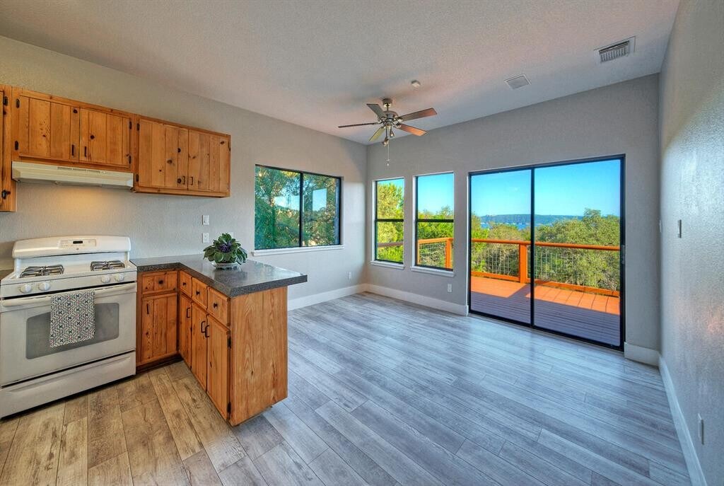 15501 Rock Creek is a lakeside retreat where every day can feel like vacation. Perched above Lake Travis, this home offers sweeping views of Windy Point and the main sailing basin from both the second and third stories, so you can wake up to water views and unwind to glowing sunsets from inside the home or it's decks without ever leaving the property. Inside, recent updates include luxury vinyl plank, fresh paint, and updated spa-inspired bathrooms. There is also a large two-car garage with an attached workshop. The large private fenced yard gives you room to spread out with space for play, pets, and boat storage, keeping your lake toys close and convenient. Included in the fenced yard is the additional .21 acre parcel, bringing the fenced yard area to almost a half acre. As a resident, you will also enjoy access to the 35 acre private waterfront park on Lake Travis, with trails, a playground, picnic areas, hike and bike trails, shoreline, and wide open space to relax by the water. This property is located in the highly acclaimed Lake Travis Independent School District. With its views, updates, and private waterfront park access, 15501 Rock Creek feels like a true Lake Travis getaway, ready for you to simply move in and start enjoying the lake life.