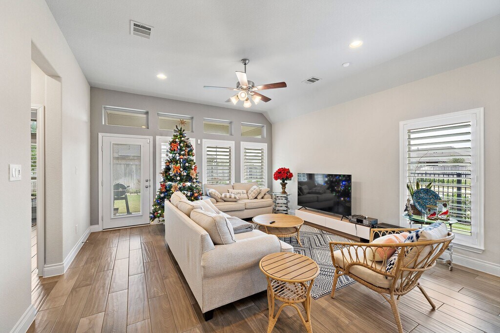 Welcome home to 15502 Rainbow Trout Drive! This is a stunning corner lot single story Perry Home. Over 2,300 SF 4 bedrooms,3 bathrooms and upgraded throughout. Wood look tile,wood shutters,and fine finishes. The kitchen features granite counters,and a gorgeous herring-bone tile backsplash. The primary suite features an oversized bedroom,and a gorgeous luxury bath with soaking tub,and a step down shower with a luxury Moen Showerhead and Water wand. Walking distance to top rated Bridgeland schools,and just a short drive to TONS of shopping,dining,and entertainment. Come make this your home today! MLS# 6601457