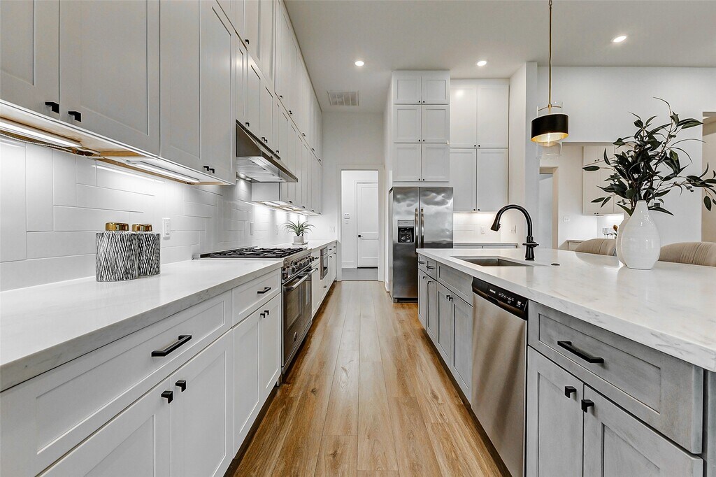 This brand-new construction by Versailles Custom Homes in Jersey Village boasts 4 spacious bedrooms,3 full bathrooms,and an attached 3-car tandem garage. The modern exterior,lush lawn,mature trees,and professional landscaping deliver undeniable curb appeal. Step inside to discover an open layout in this stunning one-story gem,featuring gorgeous LVP flooring,soaring ceilings,sleek modern light fixtures,and an abundance of natural light. The chef’s kitchen is a true showstopper,with upgraded cabinetry,Quartz countertops,a sprawling island with breakfast bar seating,luxurious stainless steel appliances,a butler's pantry,and elegant pendant lighting—ideal for hosting and everyday living. Tucked at the back of the home,the primary suite offers a serene retreat with a spa-like ensuite bathroom and a walk-in closet with custom-built-ins. Outdoors,enjoy your fully-fenced yard and oversized covered patio. Home is Move-In Ready! MLS# 83900324