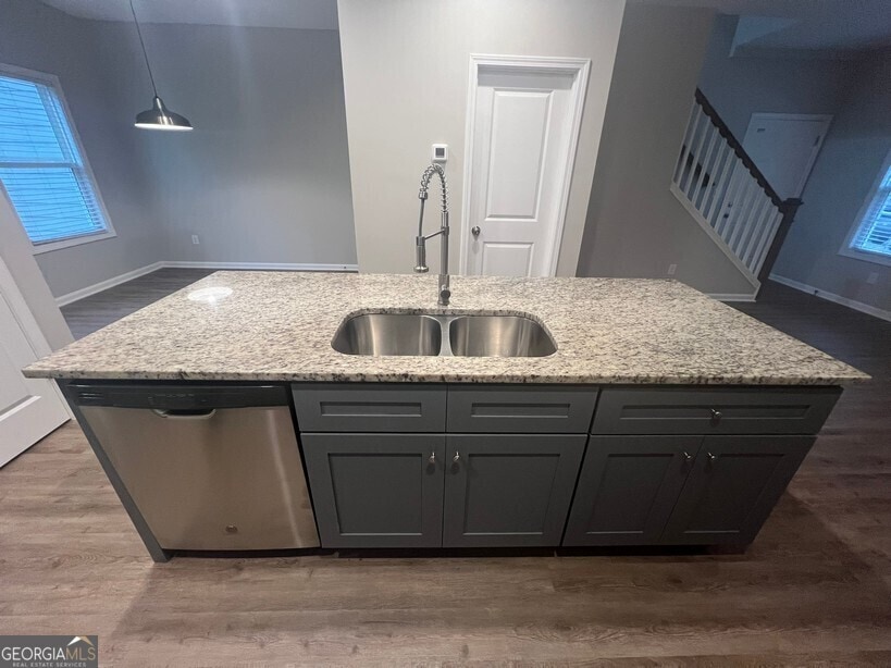 Move in Special - 1/2 Off First Month's Rent! - 3 Bedroom, 1.5 Bath Duplex Just 1 Mile from Downtown Madison. This updated duplex offers an open concept main level featuring a spacious family room, granite kitchen with stainless steel appliances, breakfast/dining area, laundry room, and a convenient half bath. Upstairs, the home includes a large master bedroom with walk-in closet, two generous guest bedrooms, and a full bath with a shared tub/shower but separate vanity rooms-one connected to the master and the other accessible from the hallway. Additional highlights include LVP flooring throughout, fresh paint, a shared front porch, private back patio, and two dedicated parking spaces. Conveniently located just minutes from shopping, dining, and all the charm of downtown Madison.