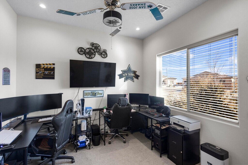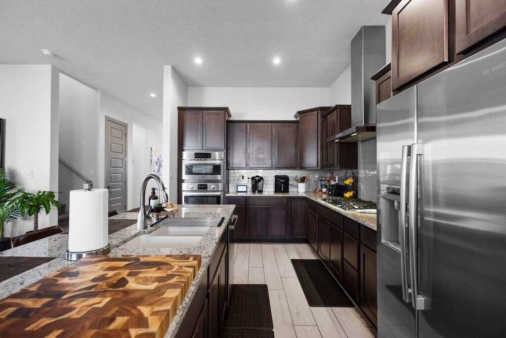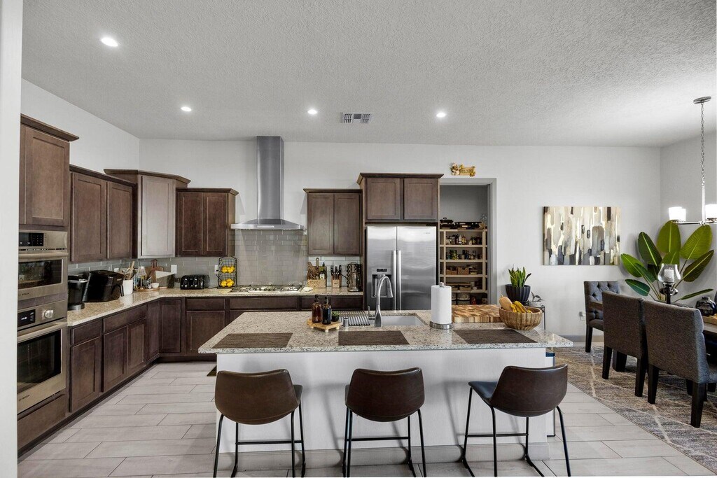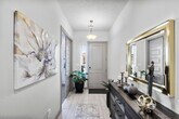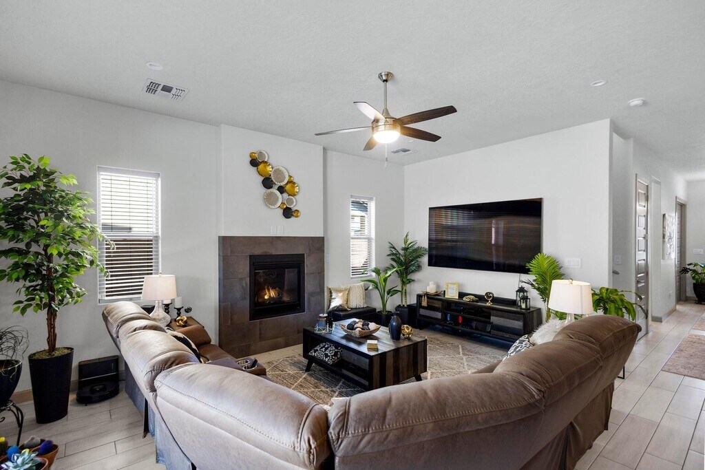 Modern warmth meets open-concept living in this solar-panel home. The living room centers a cozy fireplace,flowing to an entertainer's kitchen with built-in stainless appliances,gas cooktop,hood vent,and a huge walk-in pantry. The owner's suite features a tiled shower,soaking tub,double vanity,and an expansive closet with custom built-ins. A 3-car tandem garage adds storage. Outside,enjoy a big,landscaped backyard. Thoughtful finishes,great natural light,and energy-efficient comfort--available to lease now.