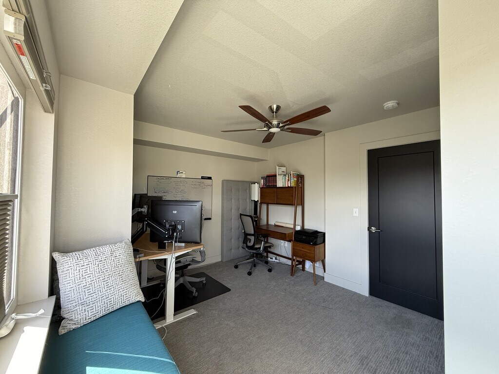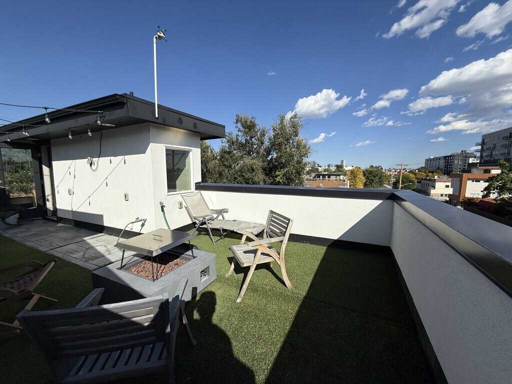 A fully furnished rental just steps from Sloans Lake. This corner lot end-unit offers views of the mountains and city skyline with incredible walkability to Denver's biggest lake and all the nearby retail and restaurants of West Denver. The home features two bedrooms, two full bathrooms, and two half baths. The main bedroom is set up with a queen-sized bed and a spacious closet. The second bedroom is flexible - it can be furnished with a queen bed or used as a home office, complete with an adjustable sit/stand desk, writing desk, a built-in bookshelf, and a custom reading nook. The kitchen comes fully equipped and ready to cook. The open layout connects to a cozy living space and opens out to a private wraparound balcony with a BBQ grill, great for weekend meals or unwinding in the evening. The home includes a Nest doorbell camera, street parking, and easy access to dog-friendly walking areas. All utilities included in rent. Minimum stay is one month. Denver Rental License #2026-BFN-0001368.