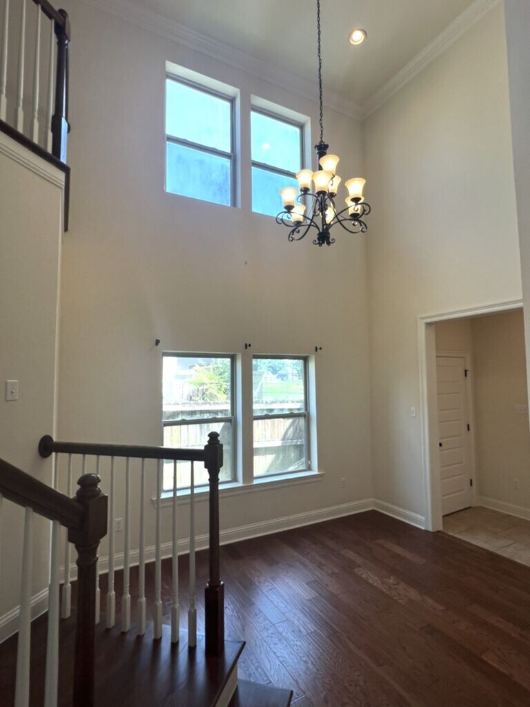 Welcome to your dream home in the highly sought-after area of Baton Rouge, LA. This stately, maintenance-free brick exterior house boasts three bedrooms, 2.5 bathrooms, and a private rear-entry double garage. The second story features an open loft den or office space, offering versatility for your lifestyle. The home is bathed in abundant natural light, highlighting the high ceilings, elegant crown molding, and the mix of wood and ceramic flooring. The spacious downstairs primary suite offers serene water views, wood floors, and a private en suite bathroom with a soaking tub and separate shower. The expansive den, with soaring ceilings, opens to a breakfast bar and a gourmet kitchen equipped with stainless steel appliances, a gas range oven, and slab granite countertops. A separate formal dining room is perfect for entertaining. Upstairs, you'll find a retreat with a versatile recreation room, an additional private room ideal for a home office or creative studio, and two bedrooms with shared access to a full bath. Outside, enjoy peaceful water views, access to walking trails, a fenced backyard, and a screened patio. The community offers walking trails, a pond, parks, and a nearby school. Plus, you're conveniently located near shopping and dining. This home truly has it all!