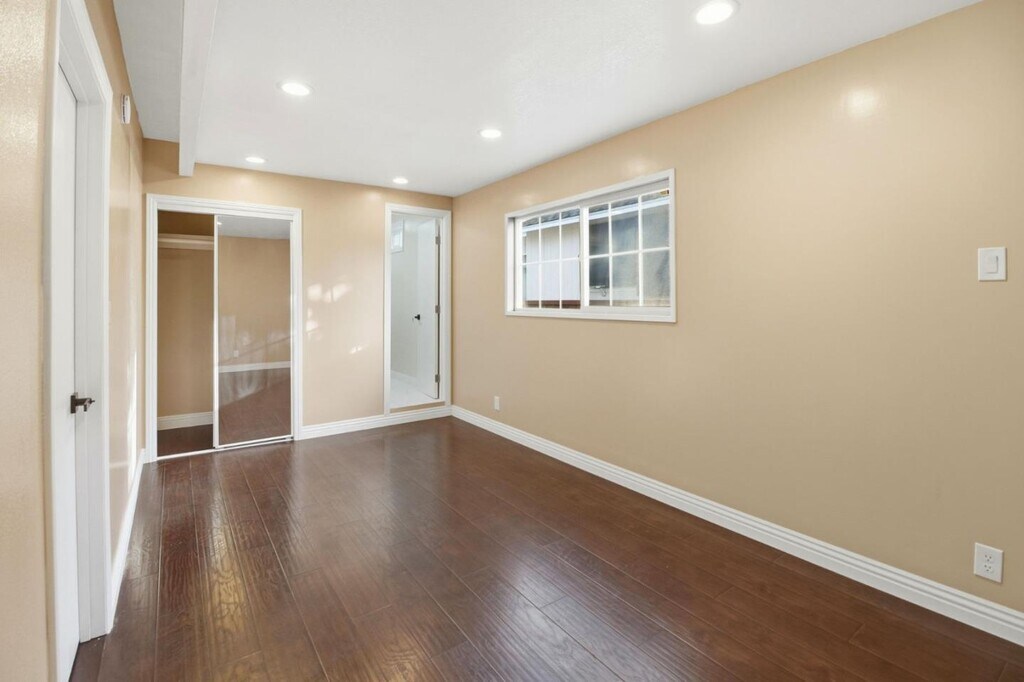 Offering a clear layout with wood-style flooring, exposed ceiling beams, and direct outdoor access through French doors, this 1-bedroom, 1-bath home balances character with everyday functionality. The living and dining areas flow into a compact, functional kitchen finished with white cabinetry, modern hardware, and stainless steel appliances, including a refrigerator, gas range, and built-in microwave. Lighting is thoughtfully placed, and the layout keeps everything within easy reach for daily routines without wasted space. Your bedroom offers a quiet retreat with recessed lighting and room for essential furnishings. An adjacent bathroom features a walk-in shower with full-height tile, a modern vanity, and clean, neutral finishes. Two pet cats are welcome in this home, making this a comfortable option for those with feline companions. Located within walking distance of Cerritos College, this home is well-positioned for both academics and convenience. Nearby essentials include Ralphs, Costco, and Trader Joes in Cerritos, along with everyday dining and shopping at Los Cerritos Center. Outdoor options like Norwalk Regional Park and Cerritos Park East provide space to unwind, while nearby access to major streets supports an easy commute throughout the area.