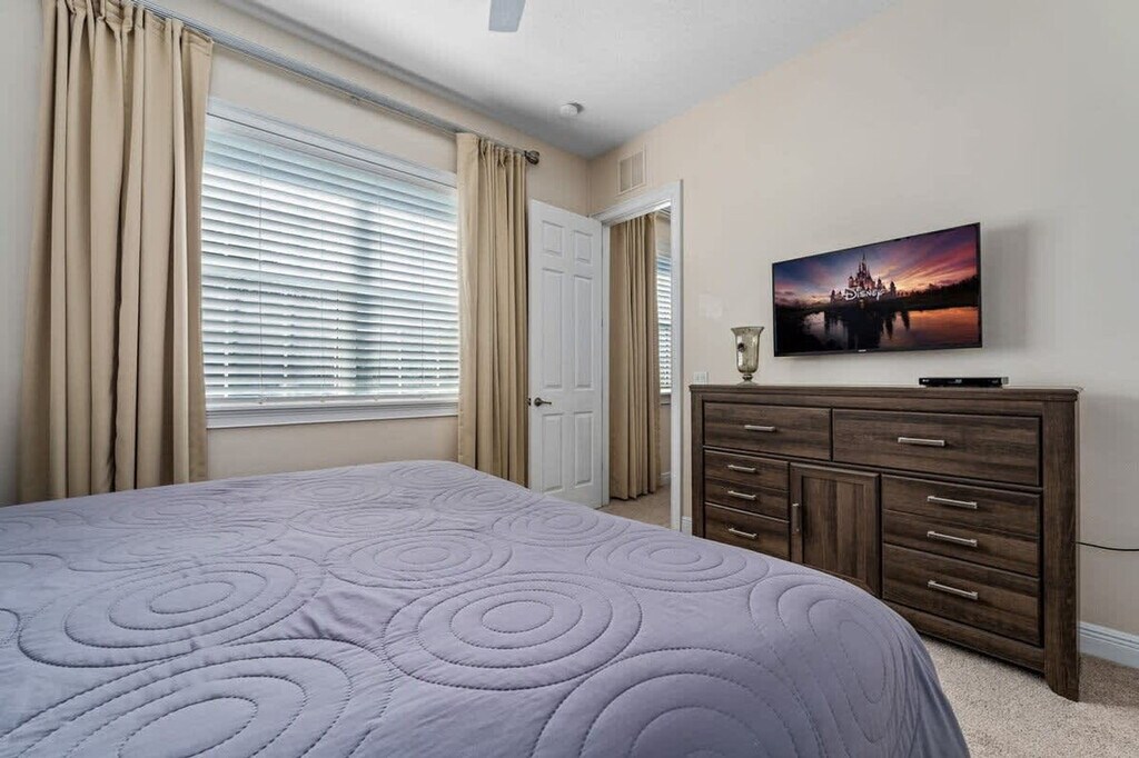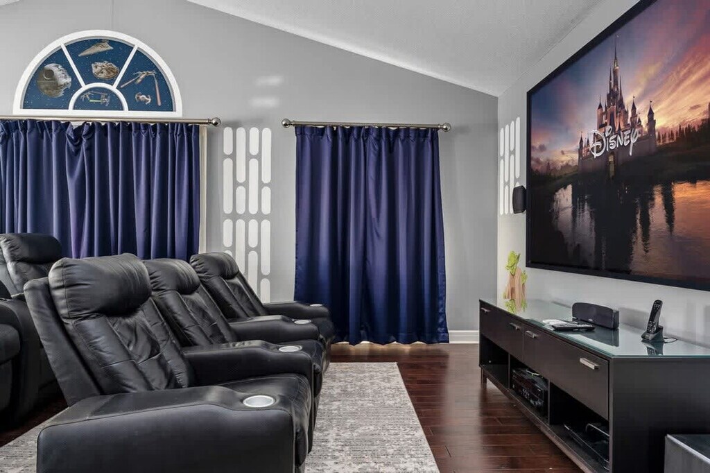 The advertised rate of $6,243/month is the lowest available price, based on a 30 day(s) stay with a move-in date of May 23, 2026. Rates vary depending on the duration of stay, season, and other parameters. For exact pricing and additional pricing components, please visit our website and enter your desired move-in and move-out dates. The rate is applicable when billed upfront; it can be higher if billed in multiple payments. Experience stunning postcard views and family fun at this three-story Reunion Resort estate! Wake up to golf, water and the iconic Reunion Grande, then unwind in living areas and balcony vistas. This home sleeps 12 and features 5 bedrooms and 5.5 baths, so you're sure to feel at home. Sunlight pours over the three-story estate as you step onto a balcony and take in postcard-perfect views of the resort, the rolling golf holes, shimmering water and the iconic Reunion Grande building. Inside, each themed room invites a different adventure, from a galaxy-far-away retreat to a tranquil seaside sanctuary. The home features two large living areas, one on each floor, perfect for gathering after a day of exploration. An upstairs loft adds extra lounge space, while a dedicated in-house movie theater on the top floor brings cinematic evenings to life. A separate apartment/in-law suite sits above the garage, providing privacy for additional guests or extended family. The game room is stocked with a pool table, ping-pong table and a variety of games, ensuring endless fun for all ages. A generous, fully equipped kitchen boasts stainless-steel appliances and ample counter space. Step outside to a private pool framed by comfortable loungers. A spacious patio with outdoor furniture creates a perfect setting for al fresco meals or evening cocktails. Pool and spa heating is available for $35 per day for the entirety of the stay, and must be requested at least one week prior to check-in. Nestled in the heart of Reunion Resort in Kissimmee, the property is steps away from world-class golf courses, water attractions and the vibrant energy of nearby theme parks. With easy access to dining, shopping and local amenities, you can balance relaxation with adventure throughout your stay. Quiet hours are between 10 PM and 8 AM. There is absolutely no smoking and no drugs allowed inside the home or elsewhere on the property. The maximum number of guests allowed at any given time is 14. Only the number of guests indicated on the reservation are allowed to stay overnight, unless otherwise agreed upon in written form. Up to two cars may park side-to-side in the driveway in front of the garage. Commercial vehicles, trailers, motorcycles, RVs, and similar vehicles are strictly prohibited anywhere in the community and are not eligible for parking passes, and violations may result in towing or fines per HOA rules. There are cameras outside for security purposes, none of them pointing to the pool area. In the event you stay beyond the original scheduled check-out time of 10 AM, you may incur a fee of up to $300. If guests are found to be in violation of any of these rules, the reservation may be terminated without refund, and/or monetary fines may be pursued. [SI]