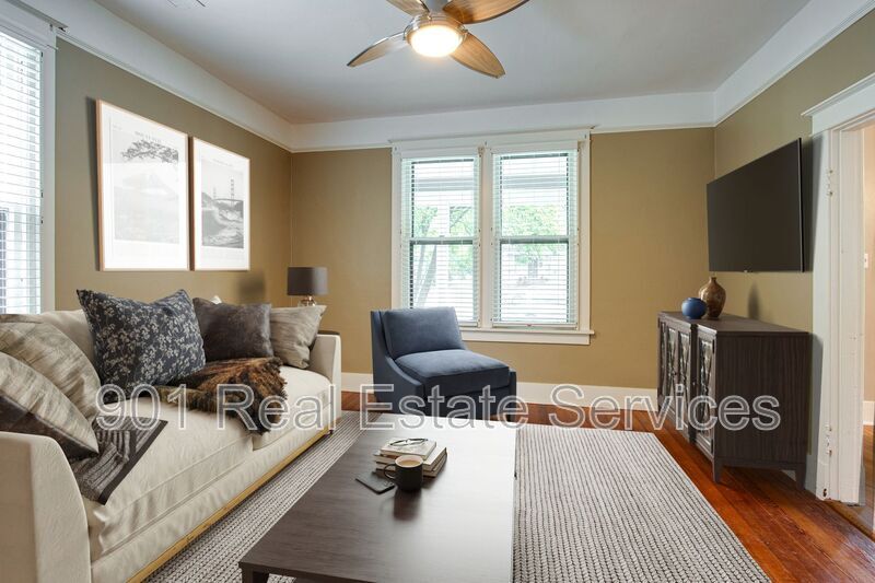 This beautifully updated 3 bedroom, 2.5 bathroom home offers the best of Midtown charm with thoughtful modern upgrades throughout. A spacious front porch with a porch swing welcomes you into the living room, which features a fireplace and built-in bookcases. Just off the main living space is a flex room, perfect for a home office or den. The formal dining room includes a statement light fixture and flows into the updated kitchen, which features modern cabinetry and plenty of storage. Two bedrooms are located downstairs, each with generous closet space. These bedrooms share a full bathroom as well as a combo half bath and laundry room for added convenience. Upstairs, the entire second floor is dedicated to the primary suite, featuring vaulted ceilings, a spacious layout, and an en suite bathroom with a glass-enclosed shower. The backyard is built for functionality and enjoyment with a large deck, a two-car garage, and plenty of fenced-in yard space. Pet friendly! SCHEDULE A SHOWING: Professionally managed by 901 Real Estate Services *Additional fees may apply. Please see below. Some photos may be virtually staged.* *Typical fees for approved applicants, not including security deposit: one-time admin fee of $250; one-time pet fee & monthly pet rent, determined by PetScreening per pet. Advertised rent price per month includes $40 Resident Benefit Package. Please ask the Property Manager for more information.* **Avoid scams: We do not post our properties on Facebook Marketplace or Craigslist and will never ask you to pay anything through CashApp, Zelle, or Venmo.** Amenities: dishwasher, disposal, garage, pet friendly, neutral wall colors, exposed brick walls, tile flooring, split-bedroom floor plan, front porch, office, deck, french doors, beautiful hardwood flooring, central heat & air, ceiling fan(s), formal dining room, fenced-in backyard, dressing closet(s), washer/dryer full size, parking - 2 car garage, shower/tub combo, blinds, close to rhodes college, located in midtown, fireplace - wood-burning, storage - basement, ceiling fan(s) w/ remote, built in bookcases, custom closets with built ins, historic building, located in evergreen historic district, historic neighborhood, close to crosstown concourse, glassed-in shower, ring camera, driveway, clawfoot tub
