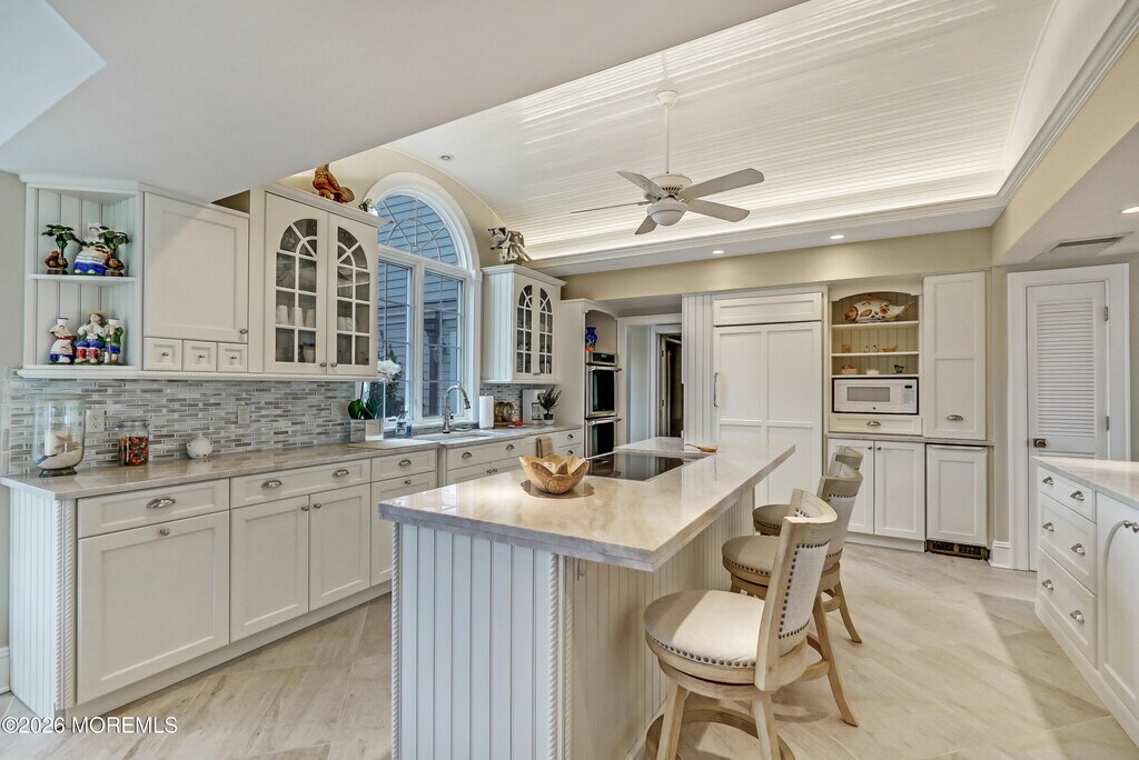 A rare offering along the Mantoloking bayfront,this exceptional waterfront estate spans over an acre at the end of a quiet Lane,delivering a level of privacy and serenity seldom found. With 8 bedrooms,7 full and 2 half baths,the home is thoughtfully designed for both grand-scale entertaining and effortless coastal living. Sun-filled interiors are anchored by a stunning chef's kitchen featuring a double island,dual refrigerators,and a full-size freezer,flowing seamlessly into expansive living and dining spaces. Multiple gathering areas--including a gracious living room,relaxed family room,and two distinct dining areas--are complemented by two bars,creating an ideal setting for hosting. The first level offers five beautifully appointed bedrooms and five full baths,while the second level--accessed by two separate staircases--reveals three additional bedrooms,including a primary suite with a private balcony overlooking the water. Outdoors,resort-style amenities define the experience: a heated pool and hot tub,outdoor shower,sweeping lawn,and a private dock capable of accommodating multiple boats. Evenings are marked by magnificent sunsets across the bay--an ever-changing backdrop to this extraordinary setting. Available May 30-June 27 and September 12-October 30. Not offered in July and August.