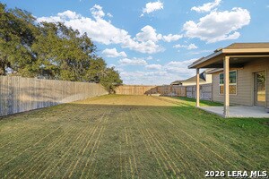 Single-story residence located in the highly desirable and rapidly growing Hunters Ranch subdivision. Step inside to soaring ceilings and luxury vinyl flooring throughout the main living areas, creating a bright and modern atmosphere. The thoughtful layout places two secondary bedrooms at the front of the home, with the private primary suite tucked away at the back for added separation. The kitchen is a true highlight, opening seamlessly to the living and dining areas and featuring a refrigerator, gas range, and a spacious center island with bar-style seating. All major appliances are included, including a washer and dryer, and the home's renowned energy efficiency helps keep utility costs low. Outside, enjoy one of the largest backyards in the neighborhood from the covered patio-ideal for relaxing or entertaining. With generous outdoor space and a move-in ready interior, this exceptional home is ready to welcome its next resident.