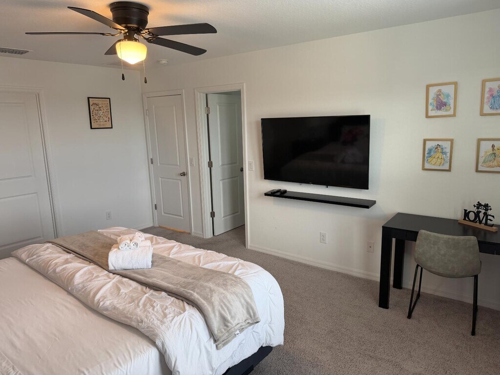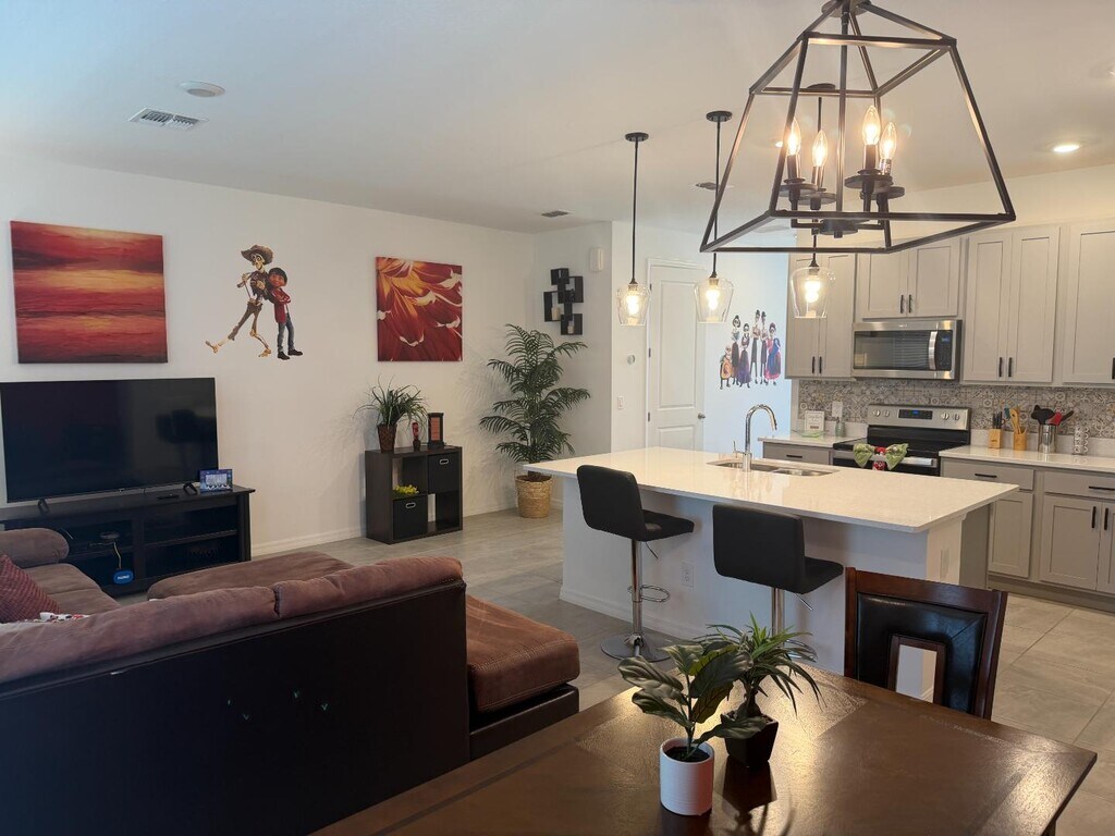 This fully furnished three-bedroom, two-and-a-half-bathroom townhouse is located within the Champions Gate Community in Central Florida. Situated on a cul-de-sac and backing to a protected conservation area. The thoughtfully appointed kitchen features stainless steel appliances, refined cabinetry, and a generous island with breakfast bar and pendant lighting.Residents have access to all clubhouse amenities, including a resort-style pool, fitness center, arcade, playground, and an on-site restaurant everything needed for a resort-caliber lifestyle. The location places you just minutes from Walt Disney World, premier dining and retail destinations, and major transportation corridors, making it an ideal home for families and travelers alike.This property is well-suited for a variety of tenants. Long-term families will find move-in-ready home in an amenity-rich community. The owner will also consider long-term lease contracts with businesses operating short-term rentals.