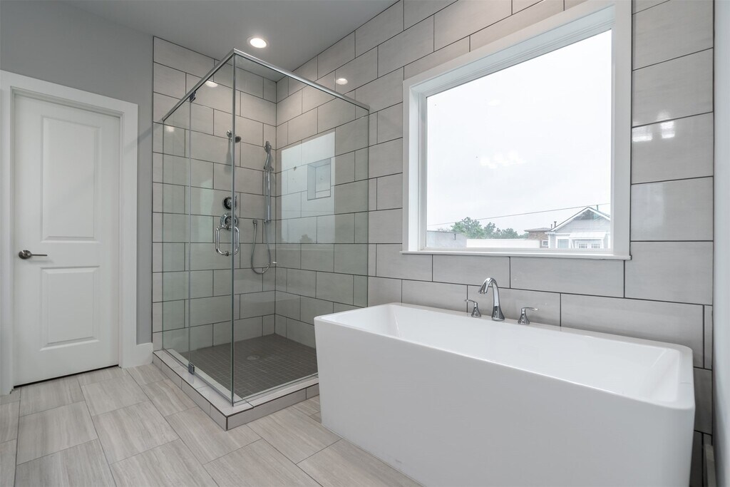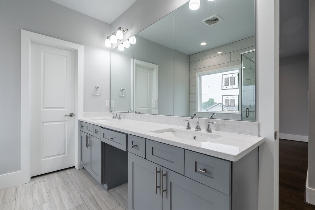 S/V Development has done it again with elevating the way we should be living. This town-home Villa conveniently located in the Houston Heights Shady Acres neighborhood has plenty to offer. This is a 3 bedroom and 3.5 bath contemporary home. Home includes a chefs dream kitchen,fully equipped with 42" cabinets,stainless steel appliances,Quartz counter tops and a large island with an abundant amount of space. The living/dining area has that open floor plan feel,with so much natural light,it's the perfect place to gather and entertain. Your Primary bedroom is a generous size room,it also offers engineered wood floors just like the rest of the house. Walking into your bathroom feels like walking into your own spa oasis; double vanity sinks,walk in shower,and a over size soaking tub.Talk about a smart home,this is it (door bell camera,smart locks on exterior doors,preinstalled cameras,smart garage door,EV charging port,nest thermostat) and much more. Far right corner lot MLS# 39257942