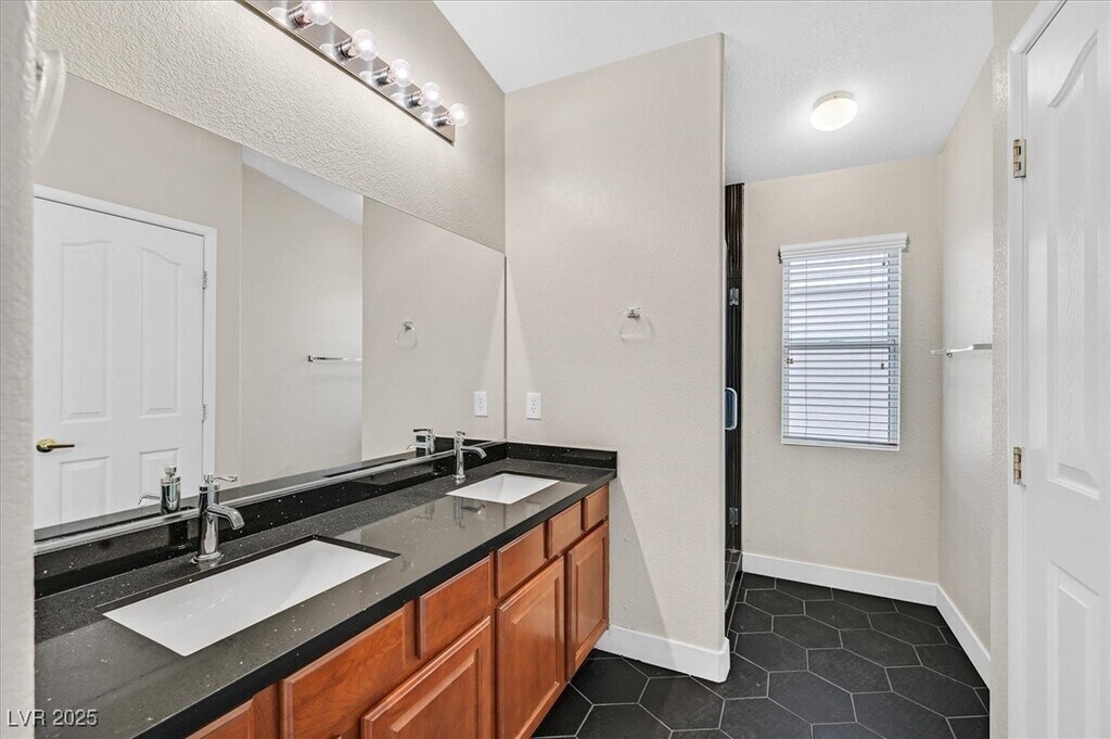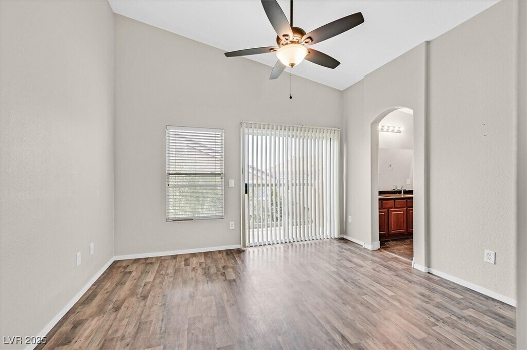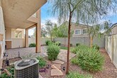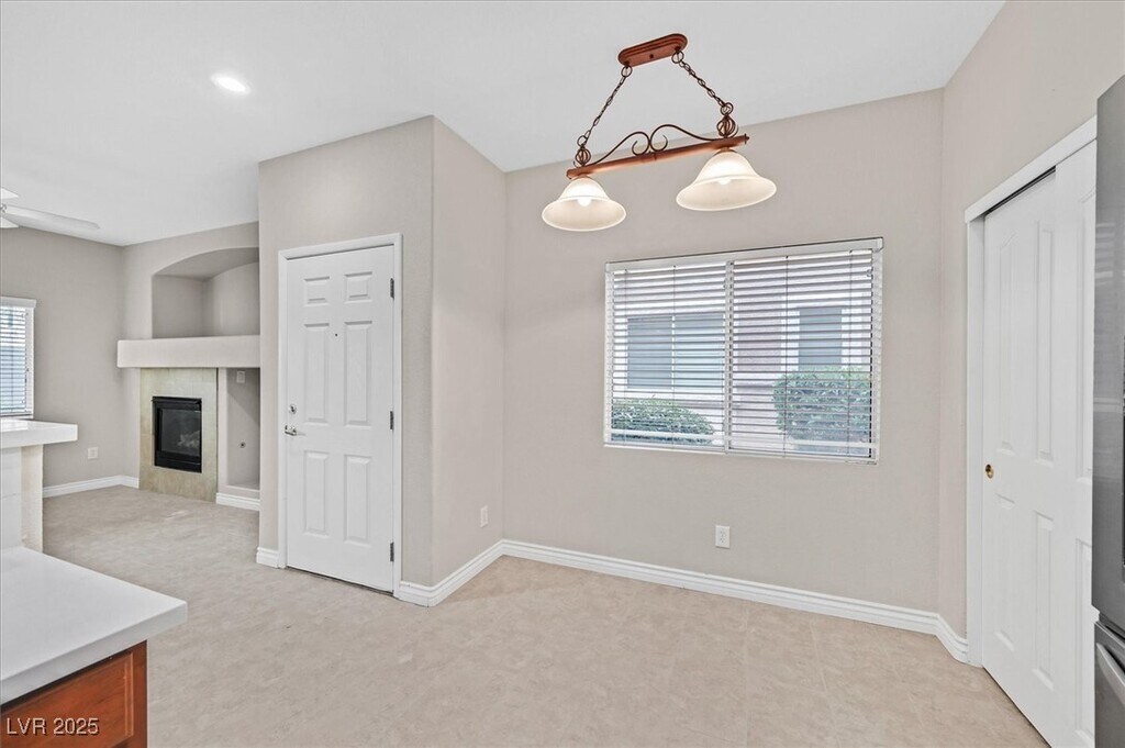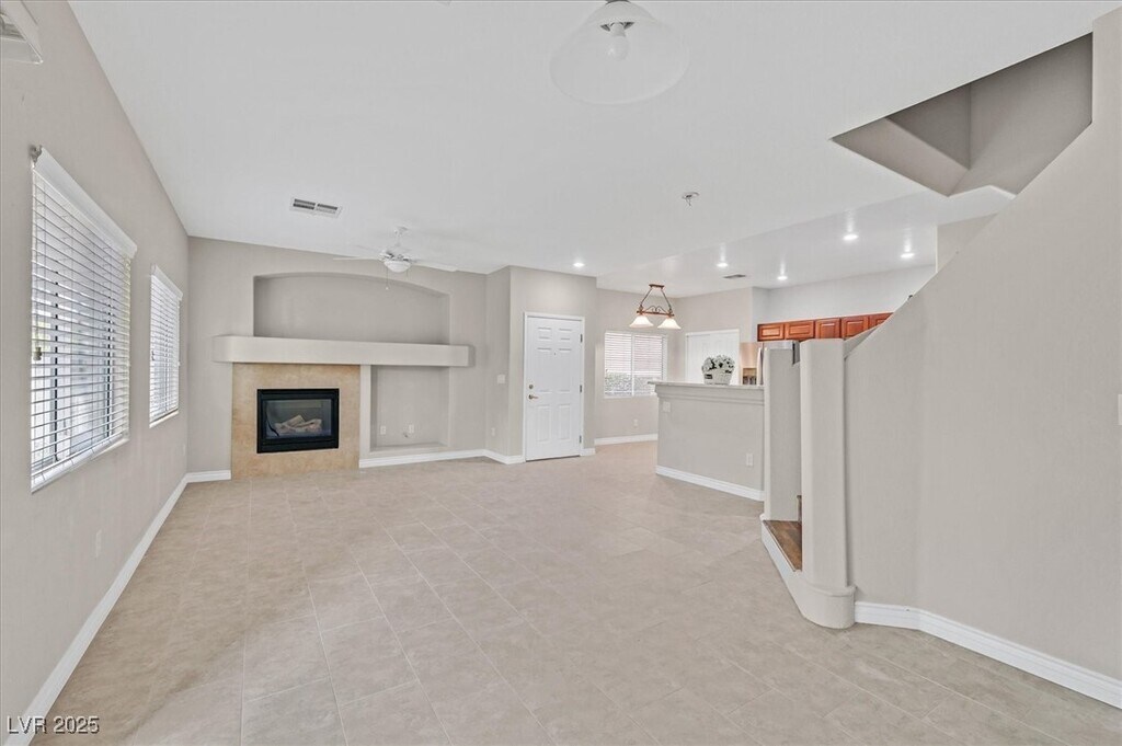 Step into style with this stunningly upgraded 3-bedroom, 2.5-bath townhome in the gated Old Vegas Ranch community! Bright and open living area features sleek ceramic tile and a cozy fireplace perfect for relaxing evenings. The gourmet kitchen shines with new quartz countertops, stainless steel appliances, roll-out drawers, large pantry, and a spacious dining area. Upstairs, luxury vinyl plank flooring flows throughout, and the primary suite impresses with a spa-like bath boasting quartz counters, custom-tiled shower, and modern finishes. Enjoy your own private backyard retreat with a covered patio and lush professional landscaping. Community perks include a sparkling pool, spa, walking trails, and skate park. Prime location near top dining, shopping, parks, and freeways. Immaculate, stylish, and move-in ready — this home has it all!
