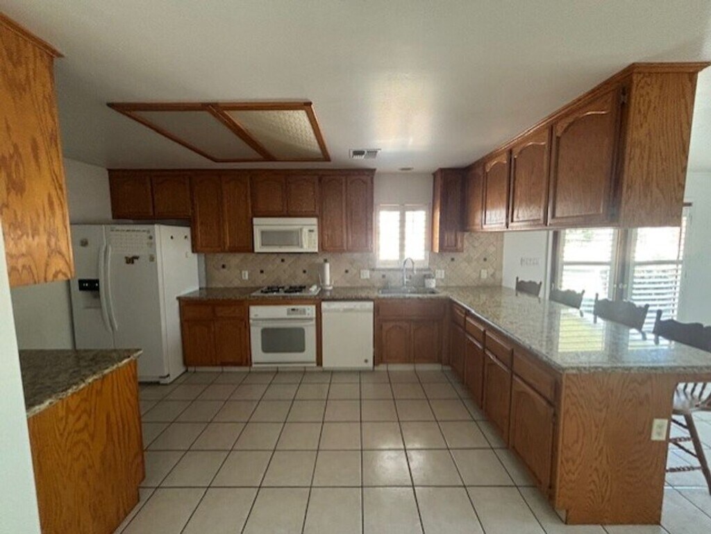 Discover country living at its finest in this beautifully maintained 4-bedroom, 2.5-bathroom home on a sprawling 2.5-acre lot near Houghton Rd & 99. With an attached 3-car garage, barn, detached storage building with workshop area, and fenced garden, this property offers both comfort and space for a variety of lifestyles. Inside, enjoy 1,887 sq. ft. of open-concept living featuring vaulted ceilings, built-in cabinetry, and abundant natural light. The kitchen boasts granite countertops, ample cabinetry, and white appliances, making it both stylish and functional. A cozy fireplace anchors the living room, while a covered back patio and welcoming front porch invite you to relax outdoors. Unique to this home are two master suites, each offering dual vanities and walk-in closets — perfect for multigenerational living, guests, or added privacy. Additional highlights include: refrigerator, washer & dryer, and gardening service all included. Utilities (water + gardening) are covered, making this home truly move-in ready. ? This property combines modern amenities with the serenity of country living. Schedule a showing today! Apply online at For more information call our office at Portfolio Property Management
