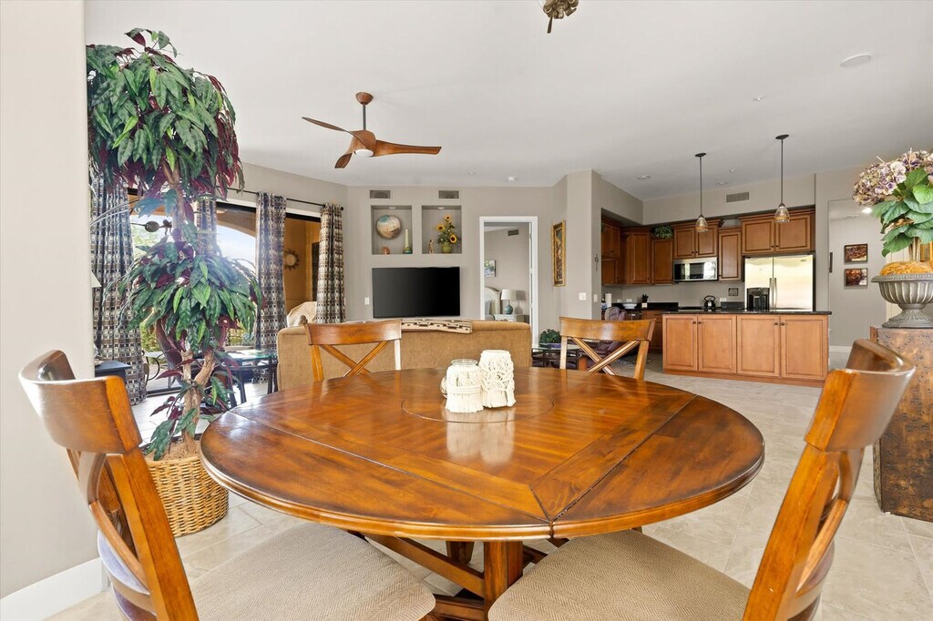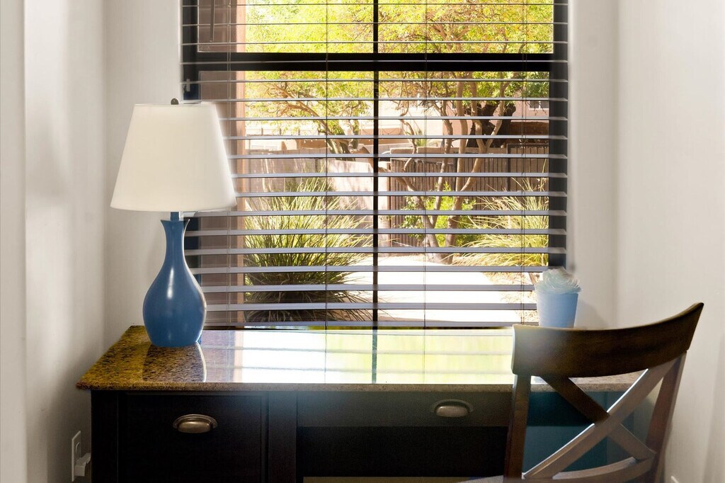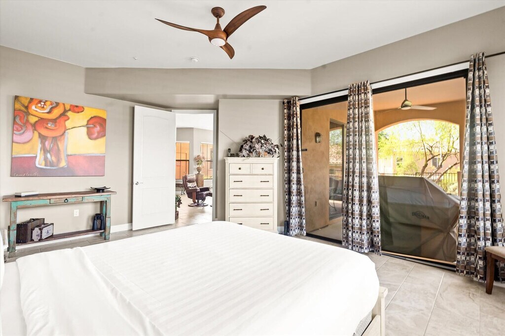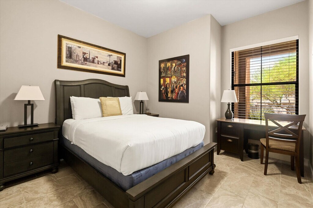 This 2-bedroom home is perfectly situated in the scenic Ahwatukee Foothills of Phoenix, AZ, offering everything you need for an amazing vacation. With a community pool, gym, and hot tub, this home provides a blend of comfort and convenience. The primary suite includes a private en-suite bath, and the home features a fully equipped kitchen, cozy living area, and comfortable bedrooms designed for rest. Enjoy the outdoor patio with dining, BBQ grill, and direct outdoor access from the living room. Welcome to your Phoenix retreat, where you can feel at home in a warm and inviting space. The home features a fully equipped kitchen with high-end stainless appliances, a large refrigerator, ample cabinetry, and a drip coffee maker. The living room offers a 60” smart TV, plush sofa, leather seating, and an open floor plan with direct outdoor access. The primary suite offers a private en-suite bath, while the second bedroom includes a dedicated workspace. Parking is available for up to 2 cars in the garage. Beach essentials are provided for your convenience. Located in a quiet, well-maintained neighborhood, this home offers easy access to hiking trails, shops, dining, and major freeways. Nearby attractions include Club West Golf Club & Trails, South Mountain Park & Preserve, and Ahwatukee Foothills Towne Center. Enjoy local dining at Gordo’s Tacos & Beer, Moku Hawaiian Grill, and Ginban Sushi. Renting a car or using rideshare services like Uber and Lyft are convenient options for exploring the area. Check-in is at 4pm and check-out is at 10am. No pets are allowed and no parties are permitted, with violations potentially resulting in immediate termination of the stay. An exterior camera is installed to monitor the cleaning team for quality and security purposes. Guests must be 25 years or older to book this property. For long-term stays, please inquire about availability. The second bedroom includes a dedicated workspace, making it ideal for remote work needs. High-speed Wi-Fi is available throughout the home. [SI]