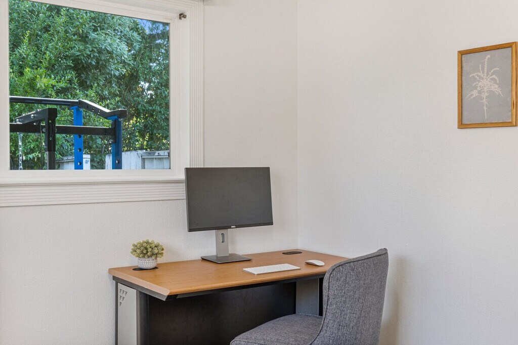 Feel at home in this newly remodeled 4-bedroom, 3-bathroom home in Los Gatos, offering approximately 1850 sqft of living space. Remodeled in July 2024, this home features brand new furniture and appliances. The fully equipped kitchen includes a 4-burner gas range, oven, microwave, dishwasher, coffee machine, toaster oven, and on-tap alkaline water filter system. Enjoy entertainment with a smart 55" TV with Roku and Samsung sound system. A new HVAC system ensures year-round comfort. The fully furnished patio with an outdoor dining table extends from the kitchen, and a spacious, fully fenced backyard features new furniture, abundant lighting, and a fire pit. Have fun with the foosball multi-games table. Each bathroom is equipped with shampoo, soap, conditioner, and a hair dryer. Baby essentials are available upon request, including a high chair, crib, and toys. Two off-street parking spots are available, along with ample street parking in front of the property. Pets are welcome with a fee of $25 per pet per night. Free onsite washer and dryer are available with laundry detergent. Located in a prime location, this home is a 2-minute walk to Safeway, Starbucks, and restaurants in Downing Center, Los Gatos, and 3 minutes to Good Samaritan Hospital. It's also 5 minutes to Downtown LG, 6 minutes to Vasona Park, 15 minutes to San Jose Airport, and 25 minutes to Stanford. Enjoy convenient access to all major highways in Silicon Valley and proximity to major tech companies like Apple and Netflix. No parties or smoking are allowed inside the house, and any violation of house rules will incur a $500 fee. The master bedroom is a studio suite and is a 1-2 minute walk away from the backyard, with no interior access from the main home. This is the main unit at the property, with a private entrance, private backyard, and complete privacy. There is another smaller private residence on the same lot. Includes a dedicated home office set-up with a 30-inch monitor, keyboard, and mouse available upon request. High-speed broadband fiber Wi-Fi is provided. [SI]