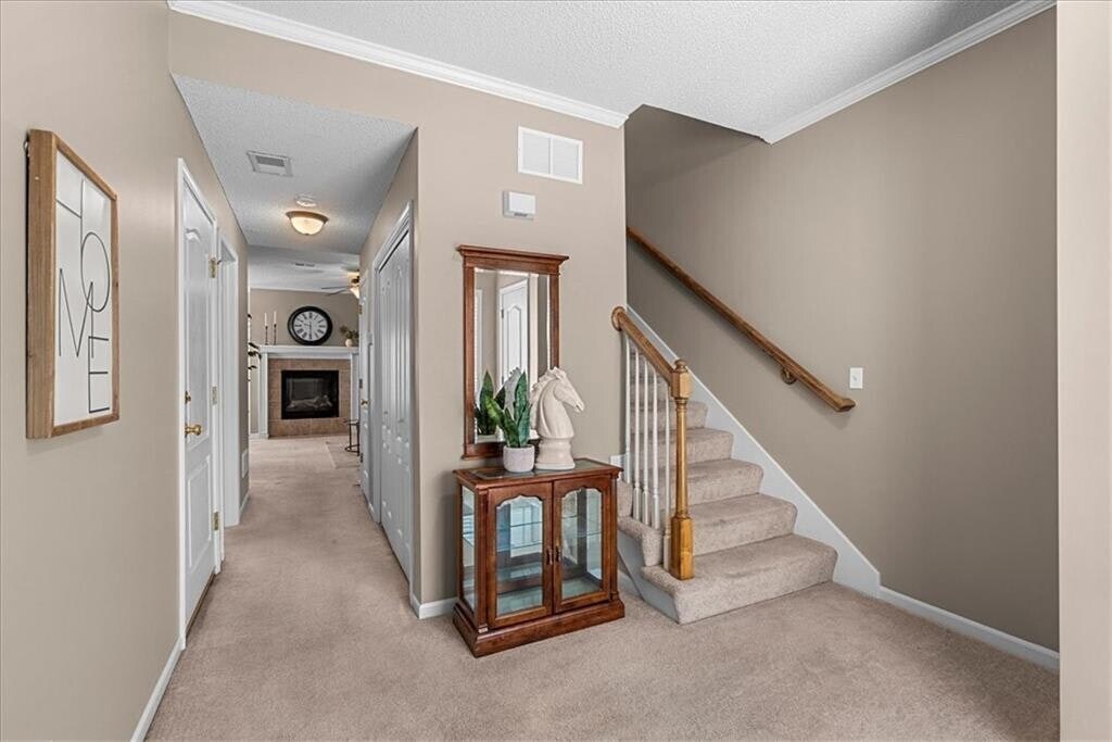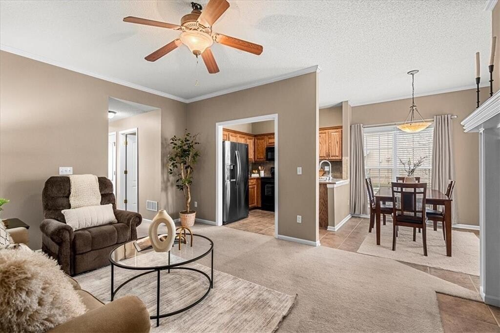 Welcome to this charming townhouse nestled in the desirable Brampton Place community of Overland Park. This well-maintained residence offers 1,529 square feet of comfortable living space, featuring 3 bedrooms and 2.5 bathrooms. The main level includes a spacious living area, perfect for entertaining or relaxing with family. The kitchen is equipped with ample cabinet space, providing a practical area for meal preparation. Adjacent to the kitchen is a dining area that overlooks the backyard, offering a pleasant setting for meals. Upstairs, you'll find the primary bedroom featuring an en-suite bathroom for added privacy and convenience. Two additional bedrooms share a full bathroom, accommodating family members or guests comfortably. The home also includes a half-bath on the main level and a laundry area for your convenience. The community is conveniently located near shopping centers, dining options, and is part of the highly regarded Blue Valley School District, making it an ideal choice for families.