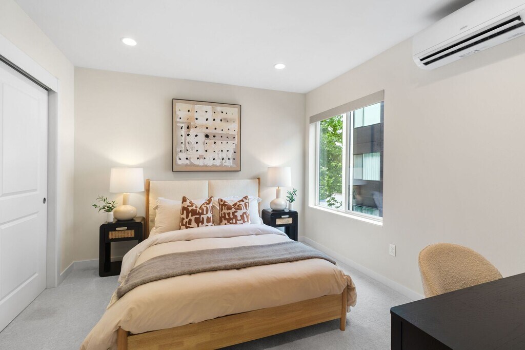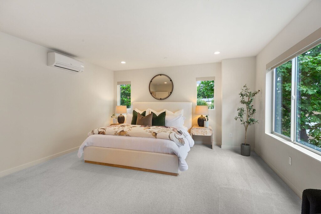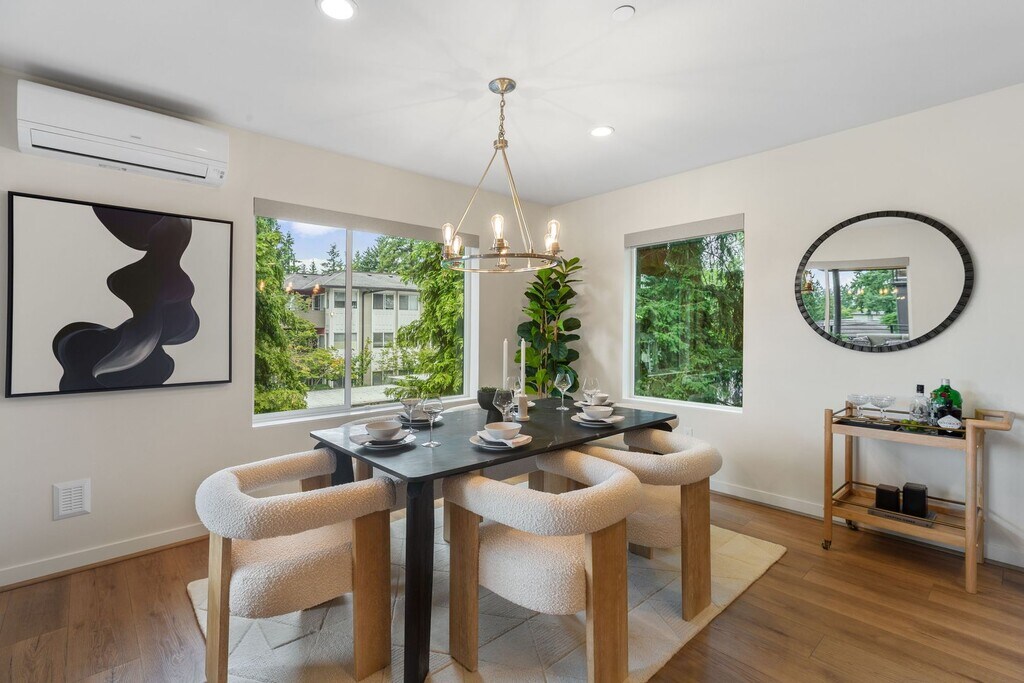 Experience elevated living in this sleek condo offering year-round comfort and an exceptional lifestyle. The elevator opens directly into the home, where wide-plank floors, natural light, and fresh finishes create a warm welcome. Gather loved ones at the oversized island while you create delicious meals with ease— Smart refrigerator, quartz counters, stainless appliances, and gas cooking. Entertain effortlessly with seamless flow to the covered deck and a gas BBQ hookup. Unwind in the primary suite gazing at the trees. Enjoy air conditioning, a 2-car garage with EV charger. Stroll to the mall, dining, movies, Crossroads Park—and Happy Lamb Hot Pot to meet friends for a meal.