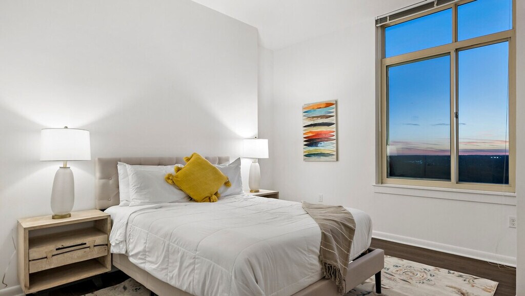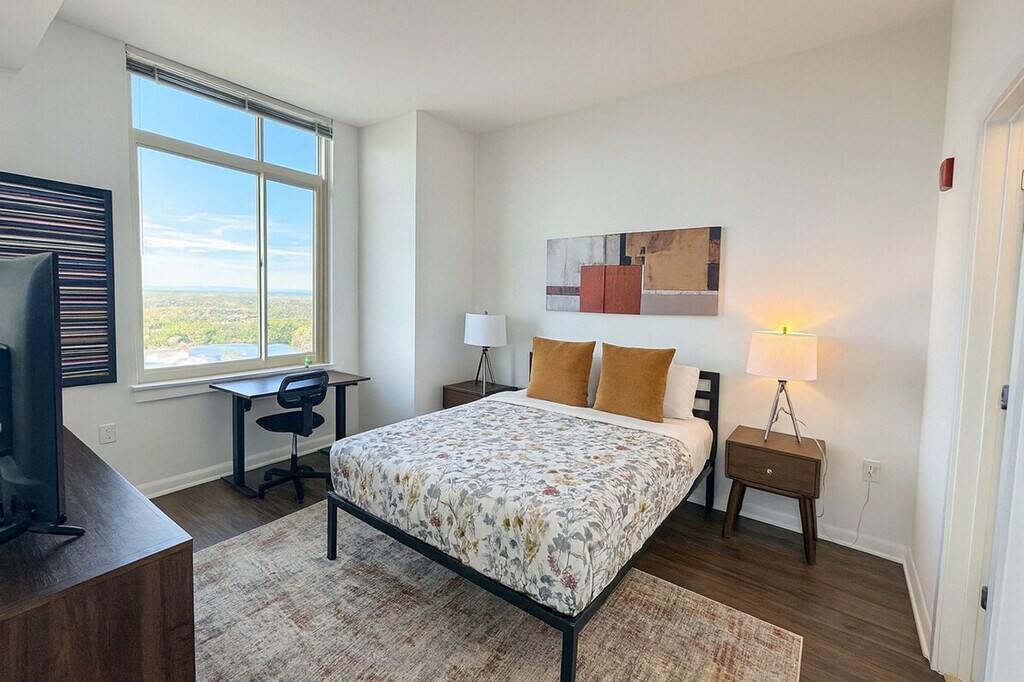 Feel at home in this stylish 2-bedroom, 2-bathroom apartment in the heart of Tysons Corner! Relax in a modern living room with panoramic views, or cook up a meal in the fully equipped kitchen. Both bathrooms are stocked with essentials. Paid garage parking is available upon request, subject to availability and must be arranged in advance. Public self-service parking is conveniently located across the street. Pets are allowed for an additional fee; please inquire for details. Steps from the Metro and premier shopping at Tysons Corner Center, this apartment provides the perfect balance of comfort and convenience. The building offers amenities such as a gym, pool, outdoor dining areas, a workspace and lounge, and a mail room. An id is required. [SI]
