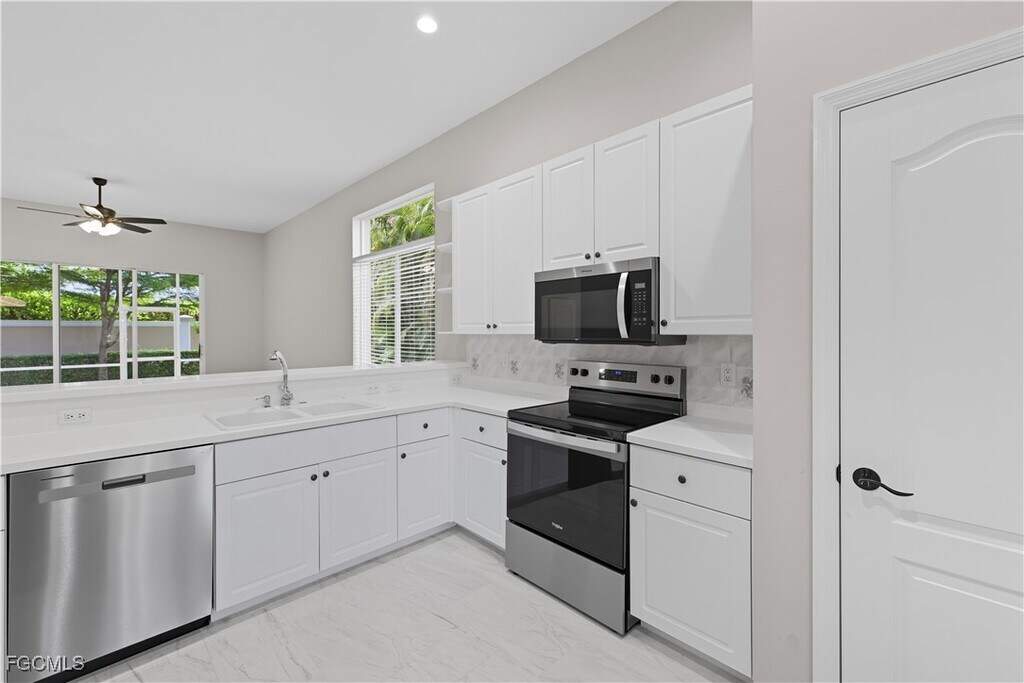 Beautiful Laguna Lakes single-family home available for rent! With 1878 sq. ft under air,this roomy home features 3 bedrooms,2 bathrooms,brand new tile flooring throughout,fresh paint throughout,brand new hardware,brand new kitchen appliances,warranted kitchen & laundry applainces,a formal living room,a family room,a 2-car garage & more! Located in the back of the community,enjoy the private setting from the large screened lanai! Amenities include a large,heated resort-style pool,kiddie pool,spa,well-equipped exercise room,volleyball,tennis,pickleball,pool table,meeting room with kitchen,and a large fishing pier. Unlike most communities,there are sidewalks on both sides of the street! Laguna Lakes is the first community from Fort Myers Beach that did NOT flood and suffered minor damage due to Hurricane Ian. Lawn care,trash,and amenity/gate access included! Incredible location near shopping,dining,entertainment,schools,hospital,grocery,and a short drive to our famous SWFL beaches! Pets & smoking prohibited. Available now for a 12-month lease! The application Fee is $100 PER ADULT. One-time lease administrative fee of $225. Please note that properties within an Association may have an additional application process,will be subject to an additional fee(s) and an additional approval process.