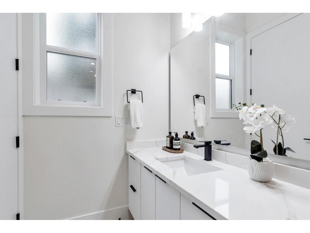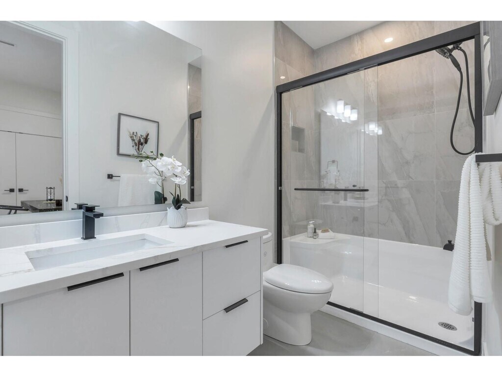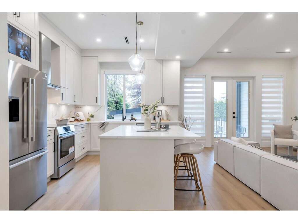 Beautiful 7-Bedroom, 6-Bath Home in Prime White Rock Location! Prime White Rock Location! Multiple patios and a fully fenced yard create the ideal indoor-outdoor lifestyle. Conveniently located minutes from White Rock Beach, Peace Arch Hospital, Five Corners shops and dining, and top-rated Semiahmoo Secondary and White Rock Elementary Beautiful 7-Bedroom, 6-Bath Home.This stunning half-duplex feels like a detached home and showcases premium finishes throughout. This residence is perfect for large or multi-generational families. Enjoy a chef's kitchen with Bosch appliances, built-in workstations, soaring ceilings on the main floor, a dedicated wine room, air-conditioning, and an attached garage.