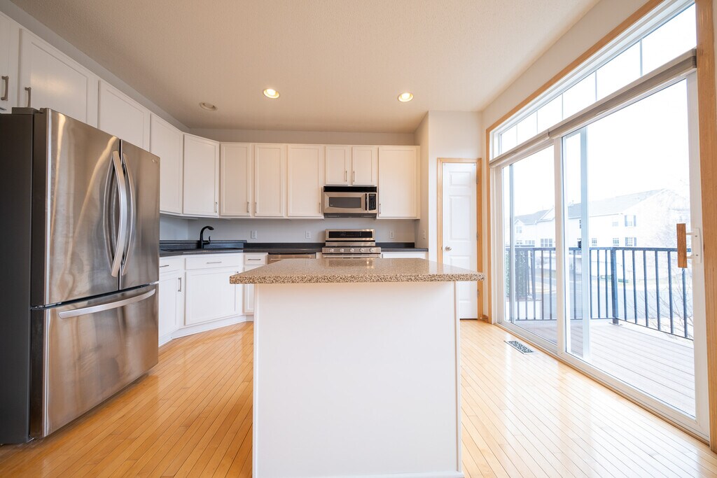 For a video tour of this home, please contact the listing agent, Michael, or search the address "15579 Junegrass Ln, Eden Prairie" on YouTube. Looking for a spacious three-bedroom townhome in Eden Prairie? Well, look no further. The main level features hardwood floors, a double-sided gas-burning fireplace, a guest bathroom for having company over, a family room, as well as a kitchen/dining room combo on the other side of the fireplace. Large windows allow for plenty of natural light. The kitchen features stainless steel appliances, a granite center island, white cabinets with newer hardware, and a small pantry for storage. There is also a balcony off the kitchen, perfect for enjoying your morning coffee with some fresh air. The upper level has carpeting, with two large bedrooms and two bathrooms. The master bedroom has a walk-in closet, as well as a private master bathroom with dual sinks. The other large bedroom has dual closets, a ceiling fan, and is close to the shared bathroom upstairs. The lower level has another finished room, which could be used to fit whatever your needs are. Could be a third bedroom, a guest bedroom, an office, or even an additional family room/media room. This room also has a bathroom off of it. Laundry is located on the lower level with included washer and dryer units too. Two-car attached garage. The home has central AC and forced air heating. To watch a virtual video tour click the following link or contact the listing agent: LEASE TERMS: Available for a May 1st move-in date or sooner. Seeking a 12-month lease term or longer. Security deposit equals one month's rent. Tenant is responsible for gas, electricity, and water. Trash, snow and lawn care are included in rent. Pets may be accepted based on the owner's approval and with a $500 non-refundable pet fee (per pet). RENTAL SCREENING GUIDELINES: Background and Credit Checks are conducted on all adults Income of 3x the monthly rent or more Credit score of 600 or higher No felonies or violence-related criminal convictions No previous evictions The criteria above are not all-inclusive, and other factors may apply; it is only meant to be a guideline. Room Level Dimen Living Room Main 17x13 Dining Room Main 18x12 Kitchen Main 14x10 Bedroom 1 Upper 21x11 Bedroom 2 Upper 15x14 Bedroom 3 Lower 14x10 MANAGEMENT: This home is professionally managed by Mauzy Properties. Mauzy Properties is a full-service property manager, and they provide tenants with a great rental experience. Streamlined application process, online rent payments, online repair requests, and many more features and perks.