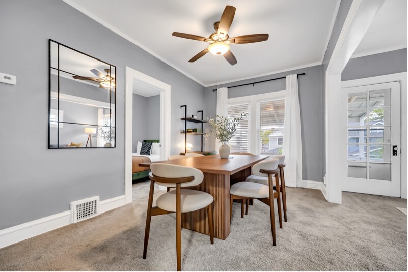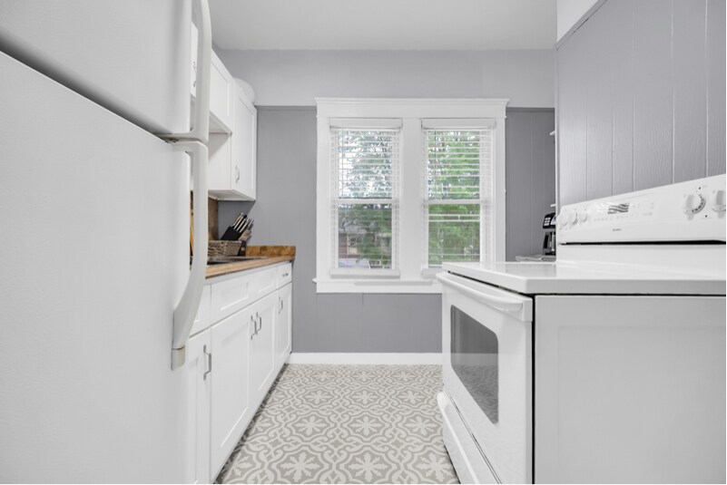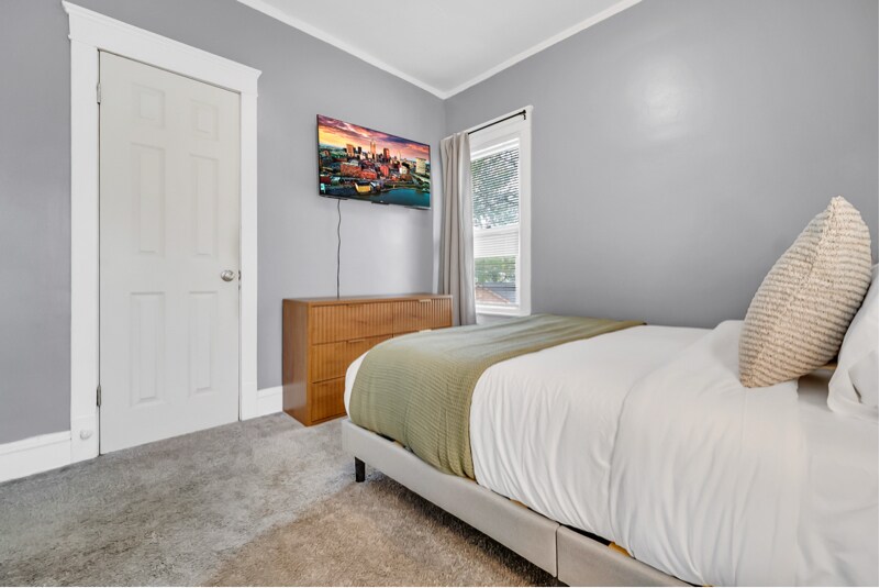 Property Id: 1961066 Welcome to your modern Lakewood getaway! This updated fully furnished 2-bedroom unit is perfect for couples, traveling professionals, or small families. Relax in the cozy living room, enjoy meals at the six-seat dining table, or work remotely from the integrated desk space. The kitchen is fully stocked with cookware, dishes, and appliances. Each bedroom features a comfortable queen-size bed and blackout curtains for quality sleep. The bathroom is clean and classic with a shower/tub combo and fresh towels. Enjoy off-street parking with one dedicated spot plus possible garage use. You're just minutes from Lake Erie, Lakewood Park, and downtown Cleveland. Walkable to local cafes, parks, and shopping. Pet-friendly! No live tours are offered. Please see the photos, map. 30 day min stay required. We have another almost identical unit at this property, so inquire now for availability!