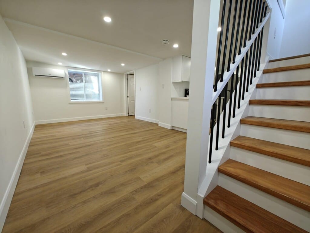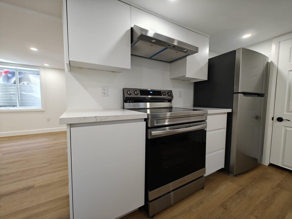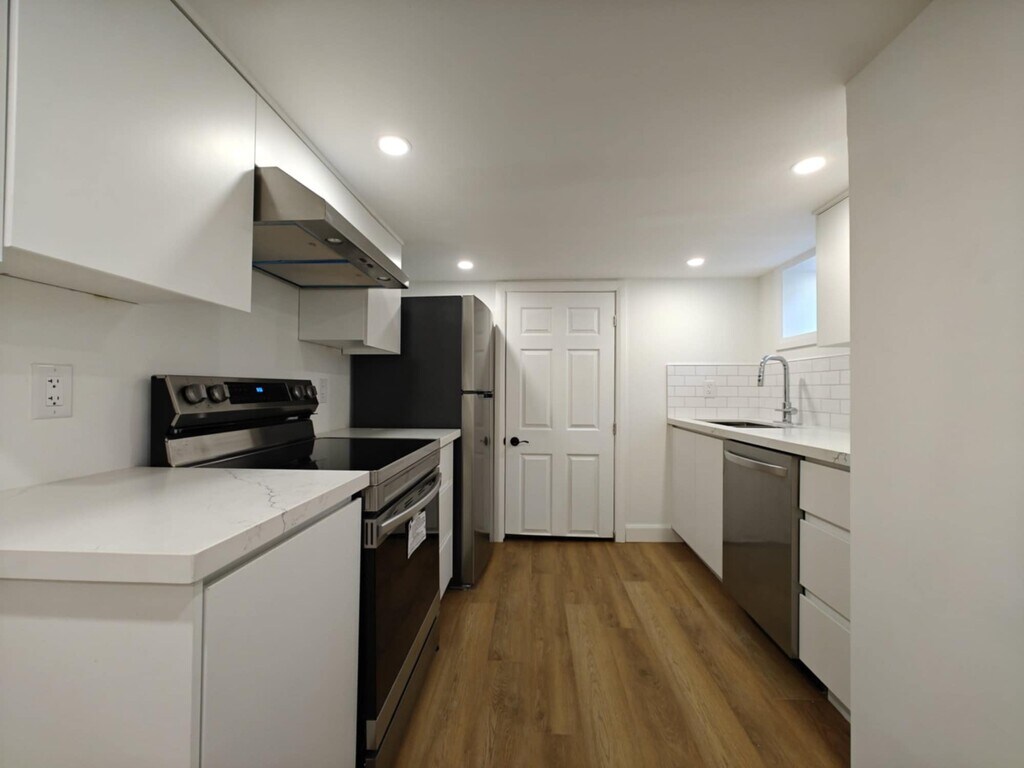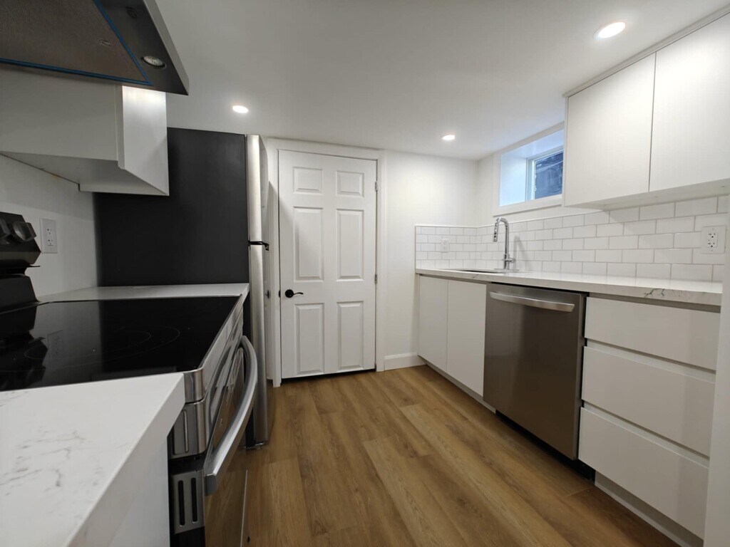 This professionally renovated one bedroom apartment will not last long! Find your beautiful new home at 156 Cedar Street South, legal duplex. There's room to park one vehicle. There is an open concept kitchen and living room offering 8 ft ceilings, a carpet-free environment, modern and beautiful finishings, gourmet galley style kitchen. The kitchen offers ample cupboard space and countertop space, and features a double sink a dishwasher fridge and stove. Any chef's dream! The brand new bathroom has a walk-in shower, tiled beautifully with a window for air flow, a lovely vanity, and a mirror with specialized lighting. Off the bathroom is the laundry room. The bedroom is very spacious and also offers a large window. The unit is 100% self-contained and does not share any air with the unit above it. It has both heat and air conditioning units that are independent of upstairs. Electricity is the responsibility of the tenant. The heat is a high efficiency HRV electric unit on the wall, however because of the high efficiency factor it will likely cost less than any gas furnace! Water is included. The neighborhood is incredibly safe, quiet, and respectful. Just a few houses down at the end of the street you can meet up with the Iron Horse trail which will take you directly to Victoria park! You are within walking distance to the Kitchener market. The successful applicant will be able to provide us with proof of income and employment, excellent landlord references, and proof of good credit should they choose to apply after a showing. If you would like to sign up to see this home please reply to this ad. We are delighted to meet you and look forward to showing you the house! 156 Cedar St South is located in the heart of Downtown Kitchener, close to Victoria Park, City Hall, Shopping, Skating, and more!