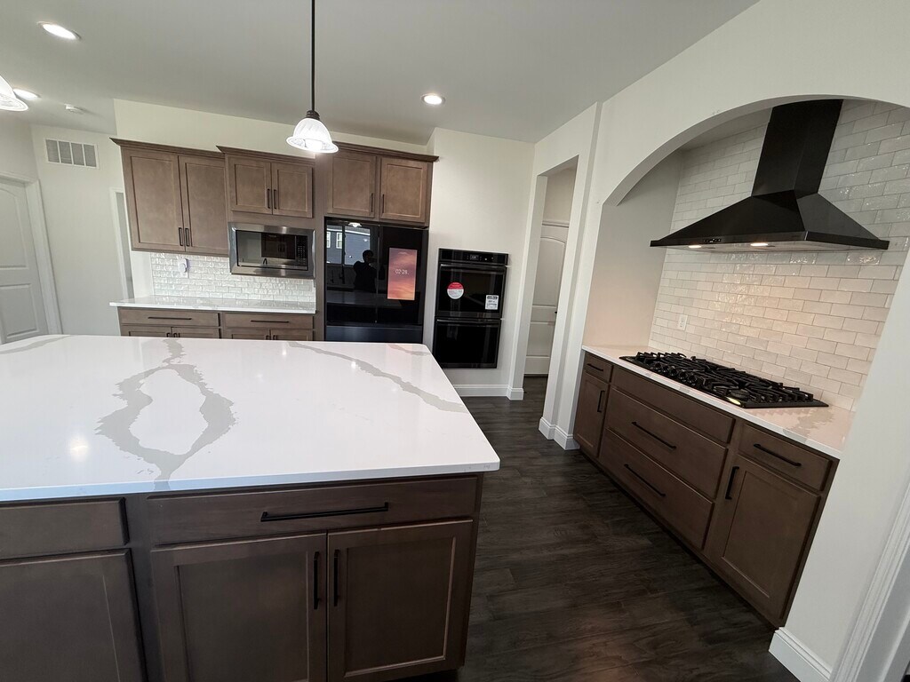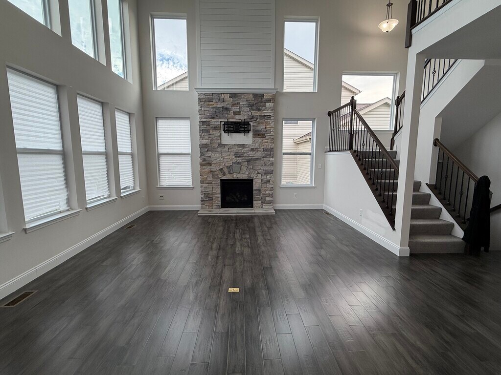 This newly built 1.5-story home blends open space, natural light, and high-end finishes throughout. The two-story great room sets the tone with a full wall of oversized windows and a floor-to-ceiling stone fireplace. Dark wood floors, tall ceilings, and wrought-iron railings add a clean, modern feel. The kitchen is a standout of its own. It features quartz countertops, a large island, upgraded cabinetry, a walk-in pantry, a subway-tile backsplash, and a latest-generation smart refrigerator with a built-in touch screen perfect for family notes, recipes, grocery lists, and streaming music while you cook. A bright sunroom sits right off the kitchen and works well as a second living space or dining area. Near the entry, French doors open into a private office. The main floor also includes a full guest bedroom and bathroom, ideal for visitors or multigenerational living. Upstairs, the master suite features a tray ceiling, a spacious walk-in closet, and a luxury bathroom with marble-style tile, a frameless-glass shower, a soaking tub, and a dual-sink vanity. Two bedrooms share a true Jack-and-Jill bath, while the fourth upstairs bedroom has its own nearby full bath great for guests or older kids. Dual-zone AC, included laundry appliances, and a 3-car garage with EV charging round out the home's comfort and convenience. Located in a quiet, newer subdivision close to parks, schools, and shopping. Home Highlights Newly built 1.5-story layout 5 bedrooms, 4 full bathrooms Two-story great room with a wall of windows Floor-to-ceiling stone fireplace Modern kitchen with quartz counters, large island, walk-in pantry, subway-tile backsplash Smart refrigerator with built-in screen Sunroom with backyard views Private office with French doors Main-level guest suite Luxury master suite with frameless shower, soaking tub, and dual vanities Jack-and-Jill bathroom upstairs Additional upstairs bedroom with nearby full bath Laundry included Dual-zone AC 3-car garage with EV charging Modern finishes throughout Pre-Screen Questions (required before scheduling a tour): Expected move-in date Total number of occupants Confirm no pets Confirm no smoking Confirm income meets 3x requirement Willingness to complete credit & background screening for all adult occupants All occupants will be listed on the lease "Please message these details through Zillow to schedule a tour." Minimum 12-month lease Household monthly income must be at least 3x the rent Only the individuals listed on the lease are permitted to live in the home Renter pays sewer, water, trash, electricity, gas, internet, lawn mowing, and snow removal No pets No smoking or vaping inside Renter's insurance required before move-in HOA rules apply (no trailers, RVs, or commercial vehicles) Security deposit , credit and background check required