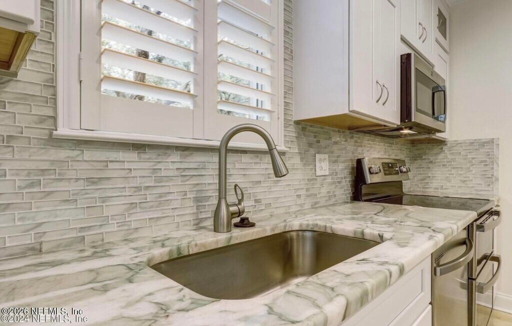 Walk to the beach from your quiet gated community! This ground floor condo has over $100k in upgrades including a stunning new kitchen with quartz countertops and lighted cabinets,updated baths,travertine floors in the main areas and new carpet in bedrooms. Crown moulding and fresh neutral paint throughout.Theres a lovely garden for you to enjoy as you eat dinner on your screened lanai.The Portafino community has a pool,hot tub and clubhouse . Less than a mile to Sawgrass Beach Club. MLS# 2142076