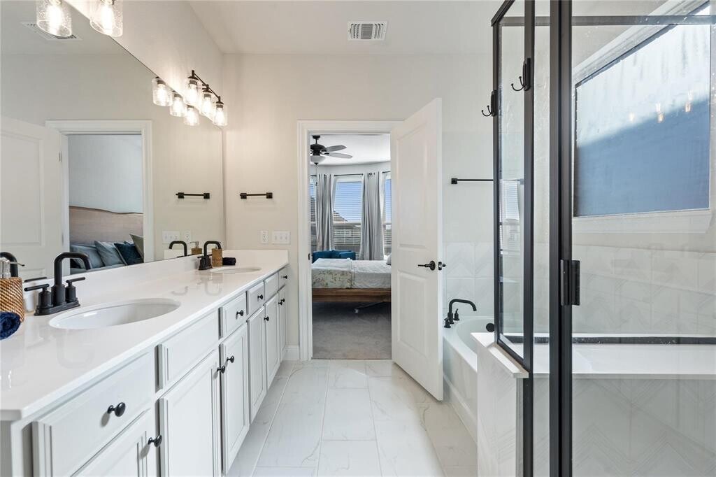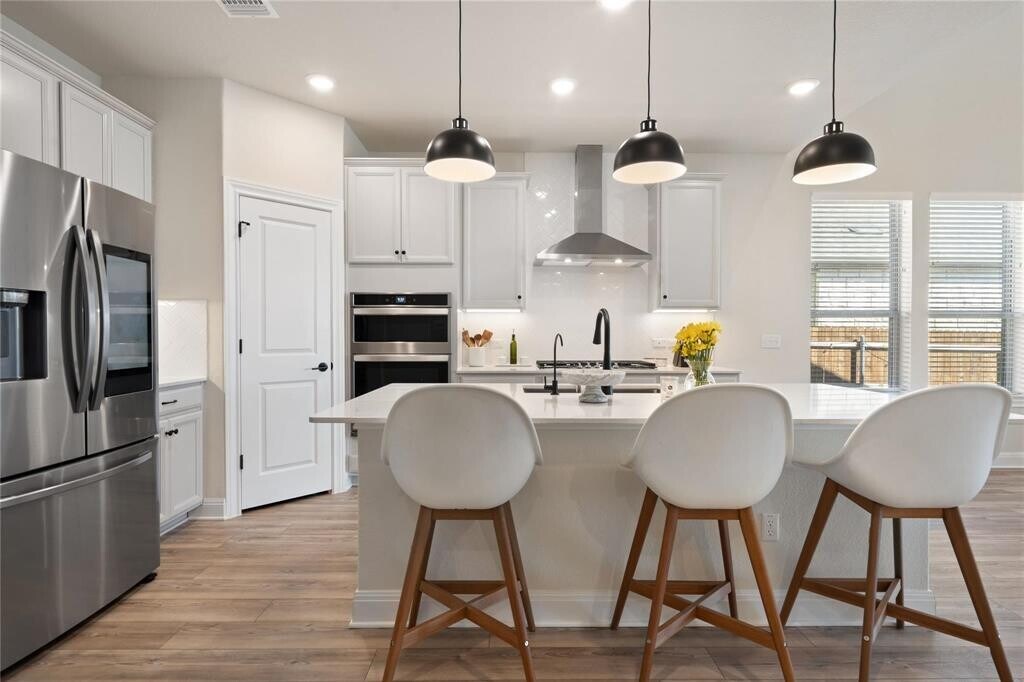 Welcome to your dream home in Santa Rita Ranch! Built in 2023, this upgraded contemporary home sits on a quiet street with peaceful pond views and no rear neighbors for added privacy. Inside, you’ll find a grand entry, a private office with French doors, and a second workspace or planning center. The chef’s kitchen features quartz countertops and opens to a spacious living area with vaulted ceilings—perfect for entertaining. Enjoy a luxurious primary suite with bay windows, dual vanities, walk-in shower, and two large closets. The home also includes a game room with built-in speakers, bidets in every bathroom, a security system, water softener, and EV charger. Step outside to a backyard ready for gatherings with a built-in gas line for grilling. MLS ID 4510258