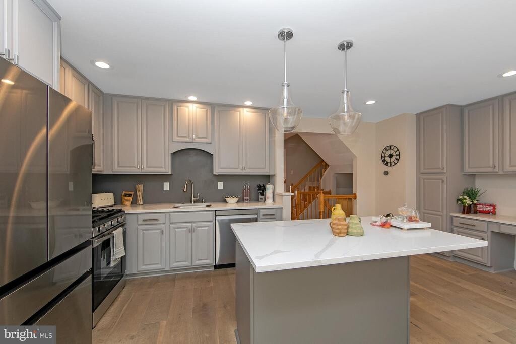 Schedule your appointment today to see this Beautiful Home for Rent! Enter into the Large Living Room with Wonderful Hardwood Floors, a Coat Closet, and Recessed Lighting. The 1st Powder Room sits right off the Living Room. Straight-ahead is the Gorgeous Eat-In Kitchen that features Wood-Like Laminate Flooring, NEW Stainless Steel Appliances, a Kitchen Island with Seating for 3, a Desk Area with Cabinets/Drawers Surrounding it, a Kitchen Pantry, Quartz Countertops, Recessed Lighting, and Plenty of Cabinet and Counter Space! You will love the Breakfast Room that comes with Wood-Like Flooring, Crown Molding, and a Sliding Glass Door leading you out and onto the 1st Deck. As you wander upstairs, head into the Primary Bedroom with Carpeting, a Ceiling Fan/Light Fixture, a 6x5 Walk-In Closet, and a 2nd Walk-In Closet! The Primary Bathroom boasts Tile Flooring, a Double Sink Vanity, a Jacuzzi Tub, and a Stand-Up Shower. Right down the hallway is the 2nd Bedroom that comes with Carpeting, a Big Closet, and a door to the 2nd Full Bathroom. This Bathroom features Wood-Like Flooring, a Big Sink/Vanity, a Linen Closet, and a Tub/Shower with Tile Surround. Need more space? Head down the the Finished Basement. This Great Space features a Wet Bar, a Family Room, the 3rd Bedroom, a Utility /Storage Room, a Storage Closet, a 2nd Half Bathroom in the Laundry Room, and a door leading you out and onto the 2nd Deck. Don't miss the opportunity to Rent this home today!