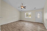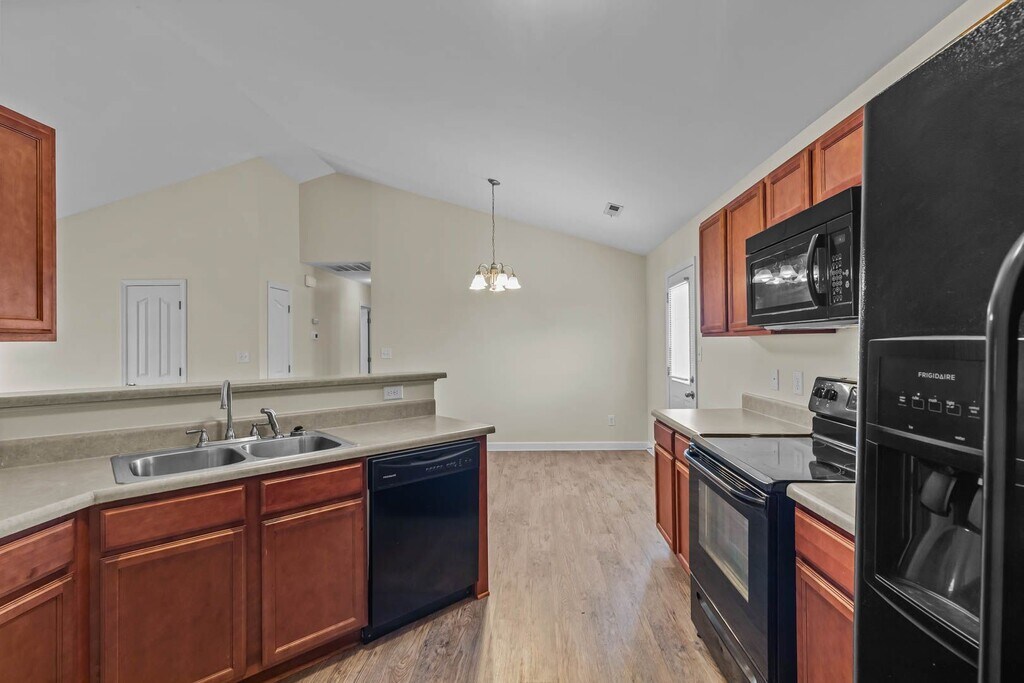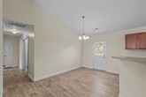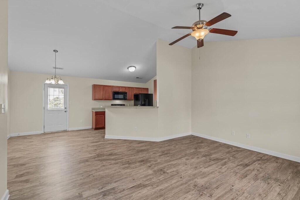 Welcome to your new Nest! Step inside from the covered front porch, where you're welcomed into a spacious living room with vaulted ceilings and an open floor plan. The kitchen and dining area feature a convenient breakfast bar, plenty of cabinet space with a pantry, a sleek black appliance package, and an indoor laundry room. From the kitchen, you can access the full-size two-car garage, which includes an extended bay—ideal for parking a boat or adding extra storage. The beautiful LVP flooring extends down the hallway and into both full-size bathrooms. All three bedrooms offer brand-new gray carpet. The primary suite features a tray ceiling, a second walk-in closet, and a private bath with a double vanity. Situated on a fully fenced corner lot in Thompson Farms, this home is just 7 miles from MCAS New River, 16 miles from Camp Lejeune, and only 18 miles from North Topsail Beach. **All residents are enrolled in the Resident Benefits Package (RBP) for $30.00/month, which includes liability insurance, credit building to help boost the resident's credit score with timely rent payments, up to $1M Identity Theft Protection, HVAC air filter delivery (for applicable properties), our best-in-class resident rewards program, and much more! This one won’t last long! Pets allowed with owner approval.