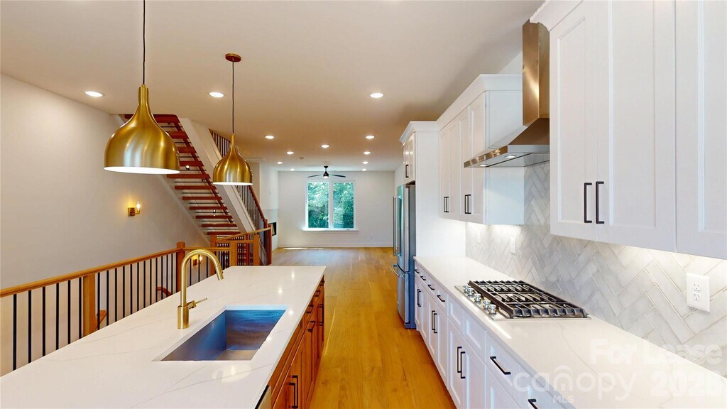 Rare opportunity to enjoy living in a newly built Biddleville end unit townhome,where cozy comforts meet modern design. Oversized windows and wide-plank hardwood floors fill the space with natural light and warmth. No carpet! The open-concept main level is ideal for entertaining,featuring a sleek kitchen with stainless steel appliances,a gas range,island seating,and sliding doors to a private backyard balcony. Upstairs,two bedrooms with cathedral ceilings and en suite baths offer privacy,along with a conveniently located washer and dryer. The lower level includes a third bedroom with en suite bath and access to a fenced backyard,while the one-car garage provides additional storage. Perfectly situated near Uptown,major interstates,and Charlotte’s booming West Side,this move-in-ready home delivers both style and convenience. MLS ID CAR4342694