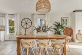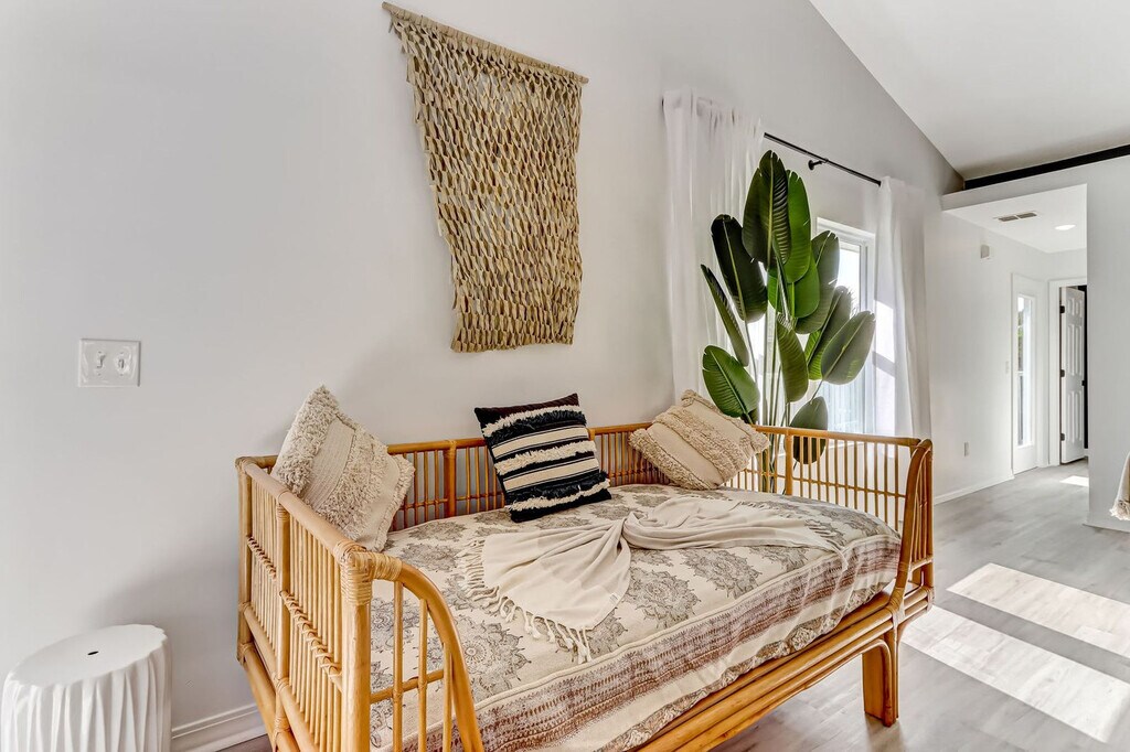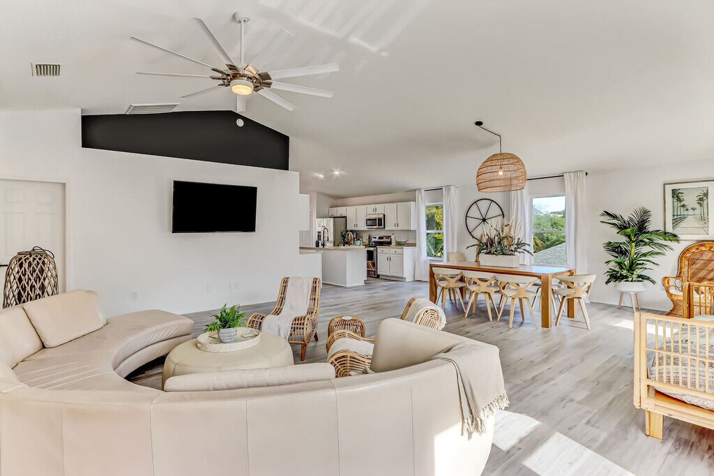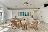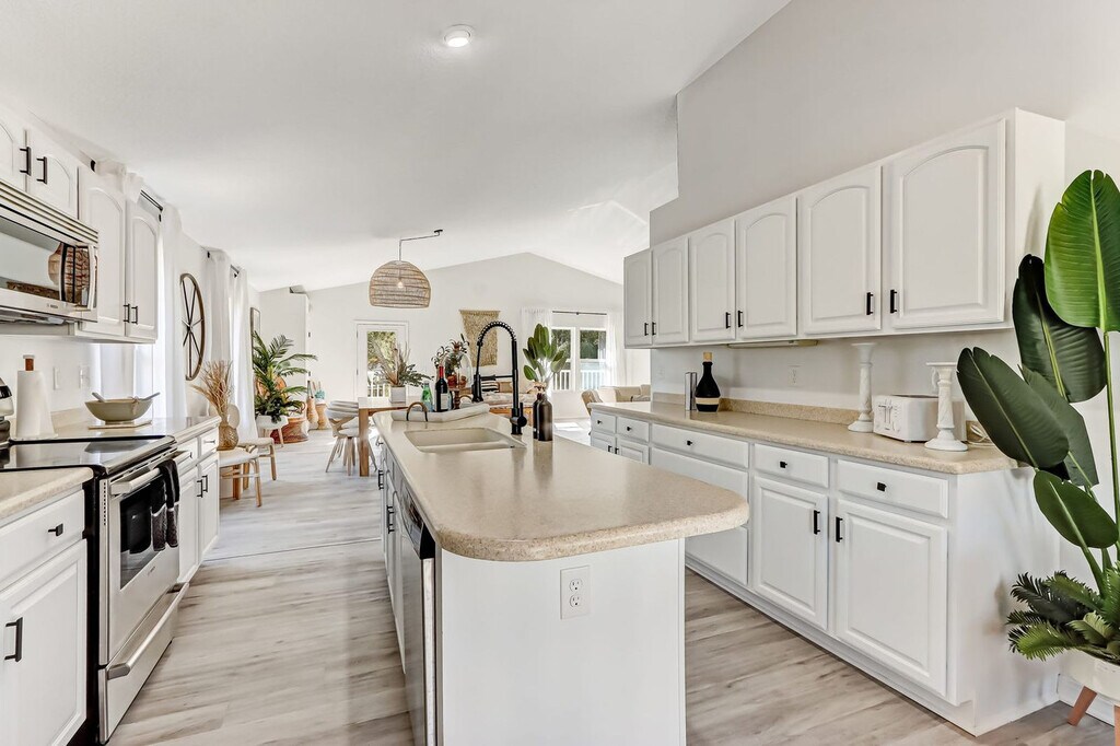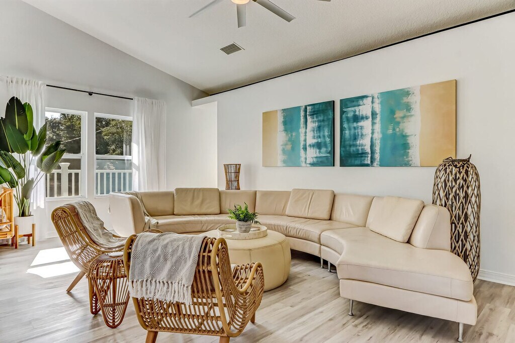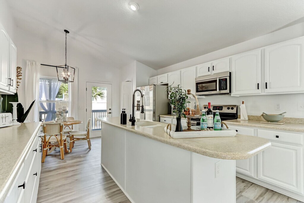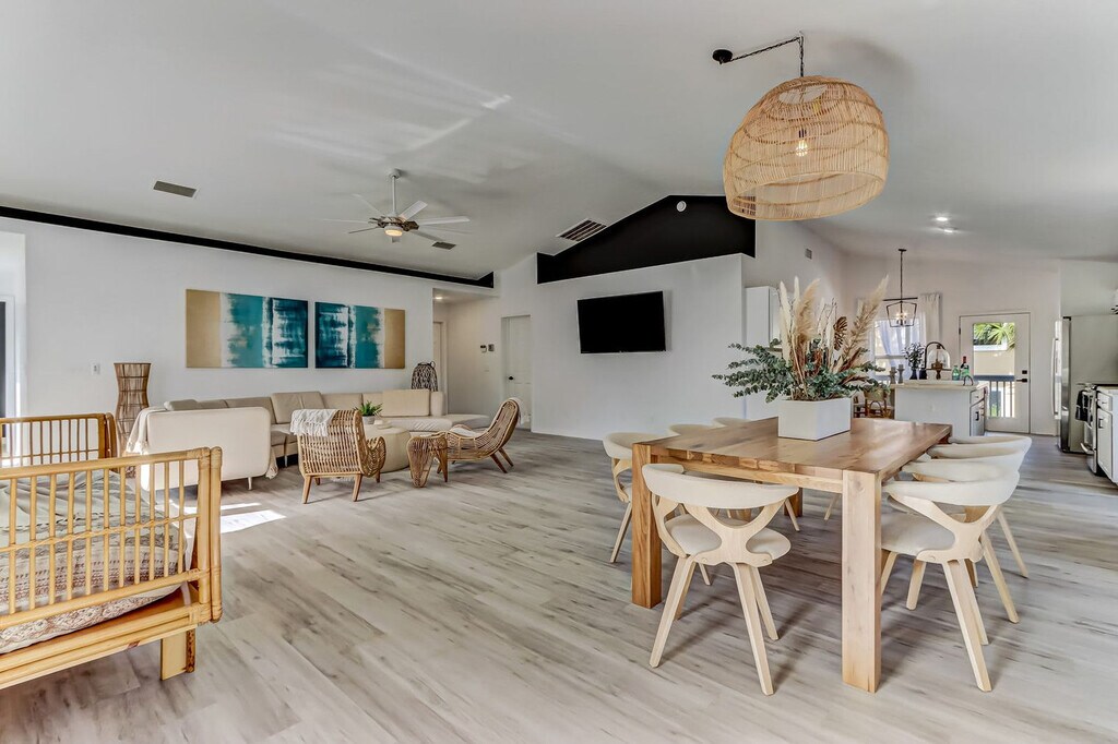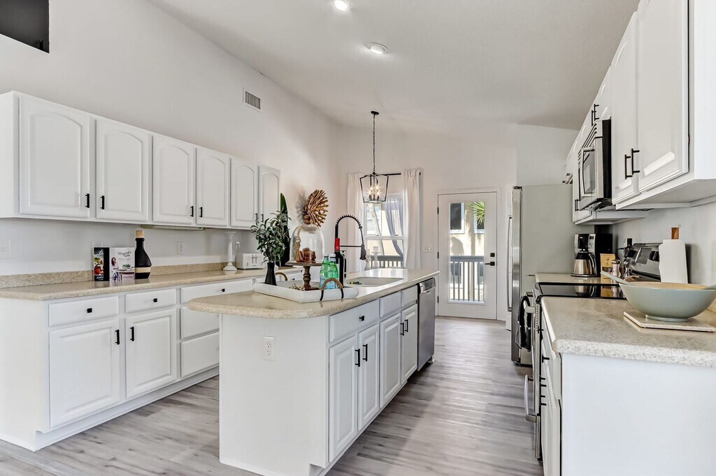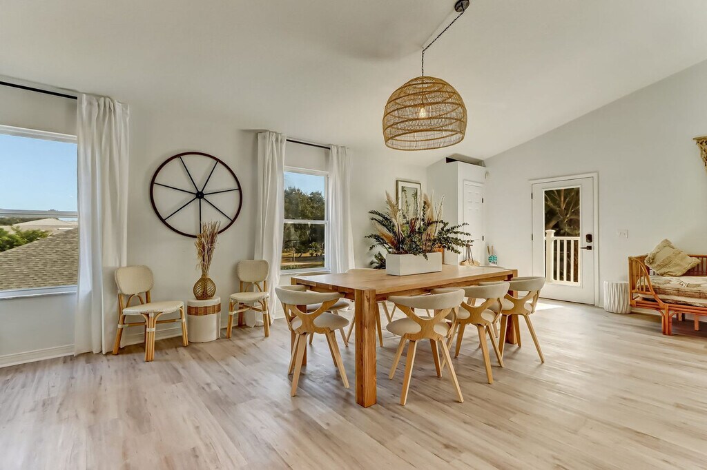 Kick back and relax at this coastal home, just a short walk to the beach and a quick 5-10 minute drive to downtown St. Augustine. This spacious home features two living rooms, a relaxing backyard with a heated pool, and outdoor dining under a pergola. Enjoy family fun in the game room/garage with a ping pong table and other games, or stay active with a small gym corner for workouts on the go. Welcome to our chic Coastal Pool Cabana, your paradise awaits. The second floor features a spacious and open dining room with a large table that seats eight, a fully equipped kitchen with ample counter space for large meals, and an additional dining set for four. The inviting living room includes a wrap-around couch, coastal chairs, and a daybed that sleeps one. The luxury en-suite master bedroom offers a king-size bed, smart TV, dresser, and walk-in closet, along with a full bathroom featuring a soaking tub and walk-in shower. The first floor includes a living room with direct pool access, a queen sleeper sofa, and a smart TV. Guest bedrooms include a queen bed and two twin beds, all with private closets. The garage offers a ping pong table, magnetic darts, and a gym corner with various equipment. Outside, enjoy the heated pool, outdoor dining set, sit-up bar under a pergola, outdoor shower, and mini-golf game. The property accommodates one dog under 50 lbs with a $248 non-refundable pet fee. The dog must be up to date on vaccinations, have flea treatment, and be potty trained. Guests are responsible for any damages caused by the pet during their stay, and additional charges apply if dog feces is not properly disposed of ($50 per pile). Located just a five-minute walk to the beach with public access, this home is only three miles from downtown St. Augustine, less than 10 minutes to most attractions. A public grocery store and top restaurants are just a few minutes' drive away. The public community center with basketball and tennis courts and a playground is a two-minute walk away. St. Augustine, the nation's most historic city, offers old-world charm, flavorful dining, art and culture, and entertainment for all ages. From the Castillo de San Marcos National Monument to the Ripley’s Believe It or Not Museum, there's something for everyone. The home is situated in Vilano Beach, a short drive to the city center with its abundance of restaurants, bars, and boutique shopping. Quiet hours are enforced between 10 p.m. and 8 a.m. per St. Johns County ordinance. The minimum age to book is 25, and the primary guest must be present for the duration of the stay. No parties are allowed, and any guests visiting outside of the reservation must be approved by the hosts prior to arrival. The home has an actively recording security camera at the front door. Tampering with the camera or disconnecting the internet may result in reservation cancellation and guests being asked to vacate. No vaping or smoking is allowed on the property, including the front porch. Evidence of smoking will result in an additional cleaning fee. Late check-outs and early check-ins require prior approval, and guests who stay past checkout time will be charged an additional fee of $50 per hour. The home is not child-proofed, and parents with younger children use the home at their own risk. Checkout procedures must be followed as written and posted in the house. The home includes a small gym corner with an ab bench, dumbbell tower, yoga mats, and more for workouts on the go. A laptop computer is not included. [SI]