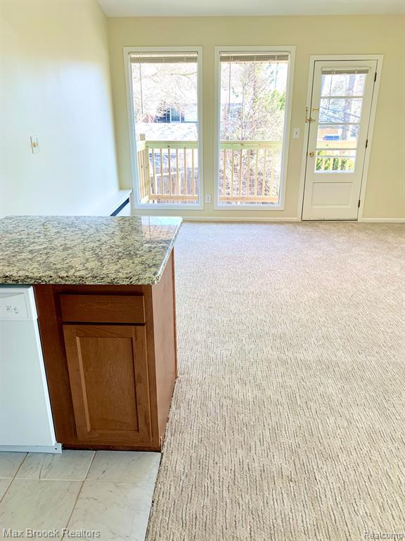 Great location! Poppleton Park living. Walk to downtown Birmingham with shops, restaurants, and parks. Super clean and updated property with an open floor plan. This upper unit includes granite counters, newer kitchen cabinets, newer/plush carpet, 12' vaulted ceilings with skylights and large bank of windows in living room for tons of natural light, dining area, large primary bedroom with walk-in closet, and full bath. Private balcony off the living room. Tons of storage in unit and separate secure storage area. Designated covered garage parking bay. Onsite laundry in lower level. Large private backyard that even has a putting green. Lease includes ground maintenance and snow removal. NO pets or smoking. Electric cost responsibility of tenant. $75/month fee for natural gas and water. Landlord requires all tenants over 18yo submit an online application with a credit report with a minimum credit score of 650, a copy of drivers license/Government ID, two recent pay stubs, and referrals from past landlords. At time of signing the lease, tenant to provide first months rent, security deposit (1.5 x monthly rent), and non-refundable cleaning fee ($150). Tenants are required to show proof of renters insurance at time of occupancy and maintain insurance for duration of lease. Online application process with a $45 fee/each applicant over 18yo. Contact me for more information or to schedule a private showing.