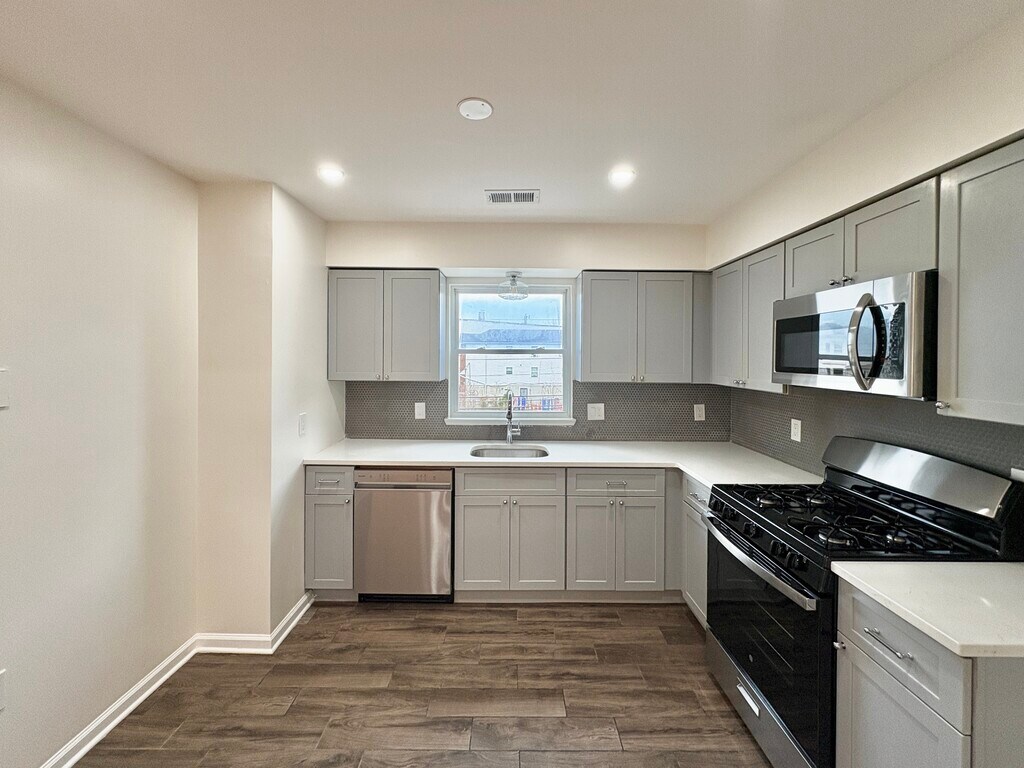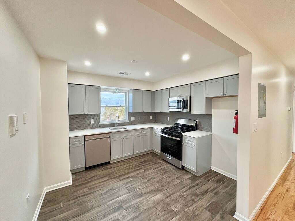 Welcome to this beautiful 3-bedroom, 2-bathroom home! From the moment you arrive, you're greeted by a charming façade, wide driveway, and attached garage, offering convenience and curb appeal. Inside, the main level features a bright, newly renovated kitchen with soft-gray shaker cabinets, stainless steel appliances, quartz countertops, and a sleek tile backsplash. Generously sized bedrooms provide comfort with neutral tones and updated lighting. The primary bedroom easily accommodates larger furniture. The updated bathroom blends modern fixtures with classic touches. Tasteful finishes and abundant natural light create effortless livability. Move-in ready and full of contemporary charm, this property stands out for its blend of style, function, and comfort.