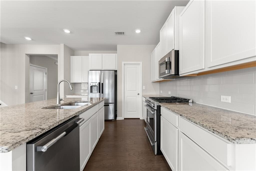Spacious Lilburn home with fully finished basement,loft,flex space,and fantastic community amenities just minutes from shopping and commuter routes! Welcome to 156 Round Pond Drive,a beautiful two-story home with a finished basement and bath,ideally situated in a sought-after swim and tennis community in Lilburn. From the moment you arrive,the inviting front porch and attractive exterior set the stage for what’s inside. Step through the foyer to discover a bright,open floor plan that blends modern style with everyday functionality. The main level features hardwood floors throughout,a spacious family room,and a versatile flex room with elegant double glass doors; perfect for a home office,formal living,or dining space. The stunning kitchen is a true centerpiece,offering granite countertops,crisp white cabinetry,stainless steel appliances,a subway tile backsplash,and an oversized island with seating that’s ideal for both daily living and entertaining. French doors lead to a generous covered back deck overlooking the backyard,creating a comfortable spot to relax or host gatherings year-round. Upstairs,you’ll find well-appointed secondary bedrooms and a large loft area that can easily serve as a media room,office,or play space. The spacious primary suite provides a peaceful retreat with abundant natural light and a luxurious bathroom featuring dual vanities,a separate shower,and a soaking tub. The finished basement adds tremendous flexibility with its own full bath; ideal for guests,a future gym,office,or entertainment area,and opens to a covered patio beneath the deck for additional outdoor enjoyment. Neighborhood amenities include a community pool,lighted tennis courts,a playground,and beautiful green spaces,all within minutes of shopping,dining,and major commuter routes. With its thoughtful layout,modern finishes,and vibrant community setting,this home truly stands out!