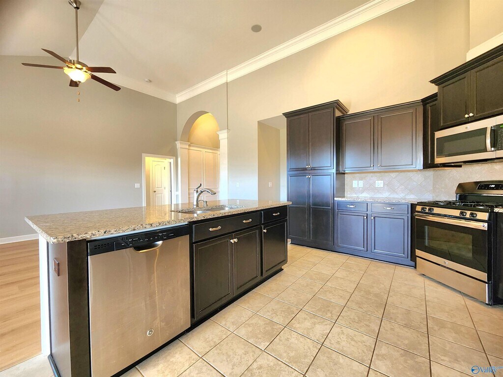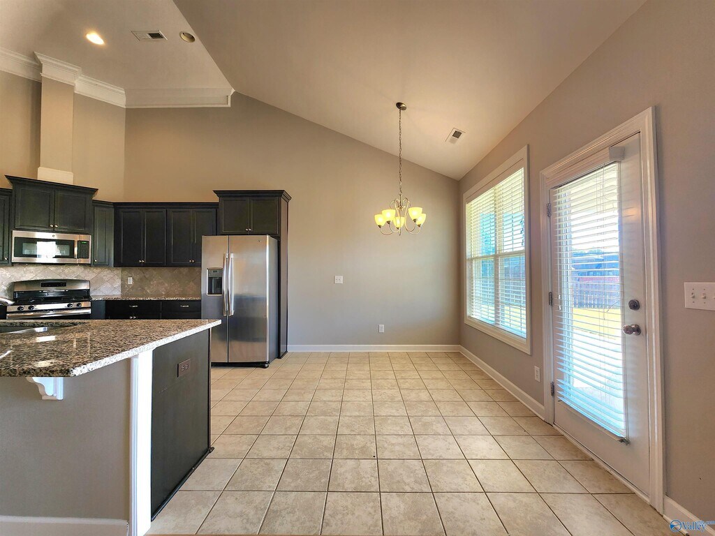 Great rental in the New Market area. This home has an open floor plan with 3 bedrooms,and 2 1/2 bathrooms. The home features granite countertops,a gas stove and fireplace,coffered ceiling in the bonus room,a bedroom suite that provides privacy for family and guests. The three car garage has a storm shelter which is an added bonus. There is an irrigation system,a large fenced in back yard,and a covered patio. The neighborhood has a clubhouse,and a pool to enjoy. Application Guidelines can be found with the pictures. Pets case by case basis.
