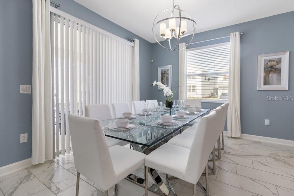 Beautifully set on a desirable corner lot,this stunning and impeccably maintained 6-bedroom,5-bath pool home offers a bright,open layout with upgraded finishes including quartz countertops,tiled backsplash,oversized tile flooring,and a large kitchen island. A main-floor bedroom and bath,spacious upstairs loft,and generous living areas provide comfort for large families or vacation guests. Enjoy outdoor dining on the shaded lanai overlooking the sunny pool and spa. Ideally located near the ChampionsGate Clubhouse,residents have access to resort-style amenities such as a large pool with cabanas,splash pad,lazy river,water slides,fitness center,theater,sports courts,and dining options—all just minutes from Disney. The Property will be rented FULLY FURNISHED. MLS# S5139929