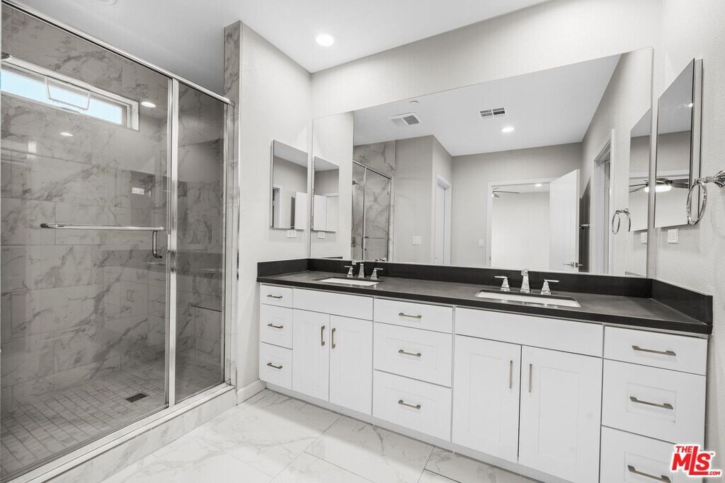This charming 4-bedroom, 3-bathroom home offers a welcoming and practical layout, ideal for everyday living and family moments. The main level features an open-concept design with warm hardwood flooring that flows seamlessly through the living, dining, and kitchen areas. The kitchen is a functional space with stainless steel appliances, ample cabinetry, and a spacious island perfect for casual meals or gathering. Large windows throughout allow natural light to flood the interior, providing lovely views of the cozy patio area. Upstairs, the home includes four comfortable bedrooms, including a master suite with a relaxing spa-like bathroom, offering a peaceful retreat. Nestled in a quiet neighborhood, this home blends modern updates with a laid-back ambiance, making it ready to be settled in and create lasting memories. Additional features include a dedicated laundry room with built-in cabinets and utility sink, central air and heat, contemporary bathrooms with dual sinks and elegant tile-work, and direct garage access for convenience. The private backyard is thoughtfully landscaped with lush greenery, a spacious patio, and low-maintenance turf perfect for relaxing, entertaining, or enjoying outdoor play. This move-in-ready property combines comfort, stylish upgrades, and a strong sense of community in vibrant Van Nuys. MLS# 25609563