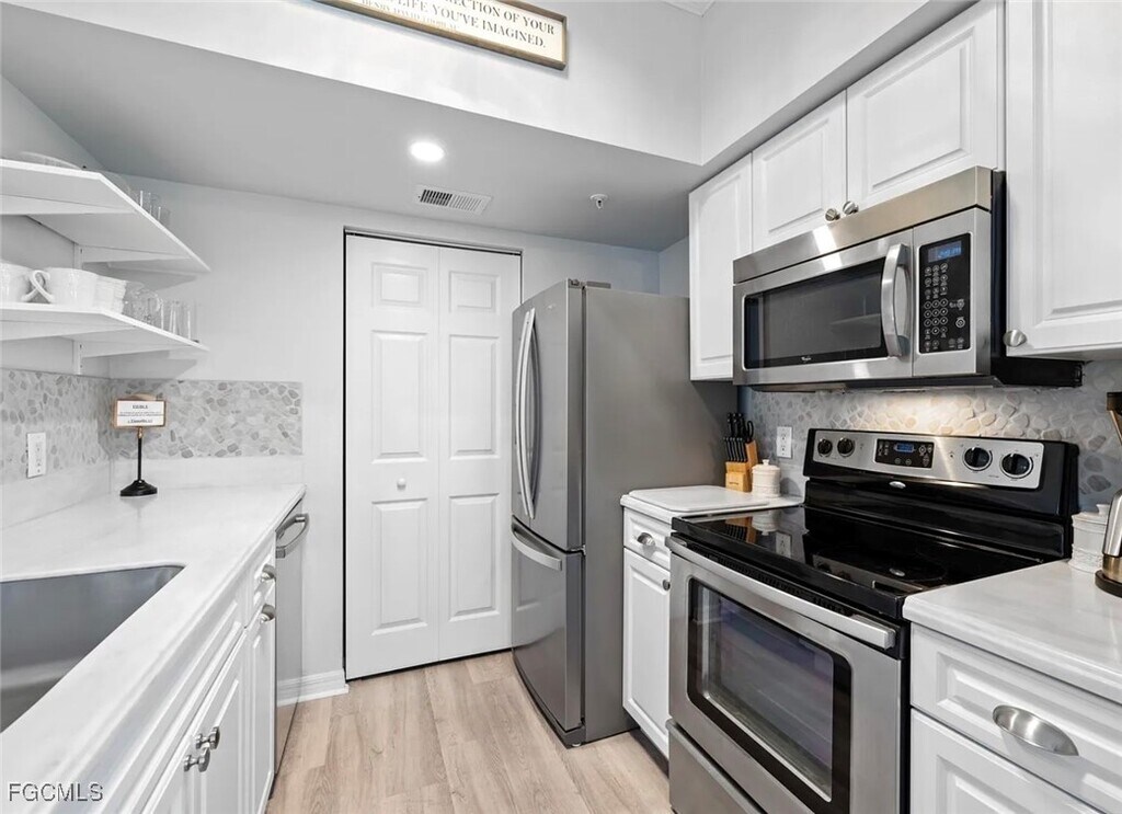 Ready to experience paradise & palm trees? Then look no further! This fully renovated condo is the perfect getaway for couples or solo travelers looking to escape to the beautiful beaches of Fort Myers. Located just a 7-minute drive from the beach,you'll have easy access to all the fun in the sun you could ask for. The condo itself is one bedroom and one bathroom,making it cozy and comfortable for up to two people. And with its Pinterest-perfect decor,you'll feel like you've stepped into a dreamy beachside retreat. The living room is the perfect spot to relax after a long day of exploring,with plush seating and charming coastal accents. The kitchen is fully equipped with everything you'll need to whip up a delicious meal,including a stove,refrigerator,and microwave. When it's time to retire for the night,the bedroom awaits with a comfortable queen-sized bed and soft linens. And the bathroom is clean and modern,with all the amenities you need to freshen up before another day of adventure. In addition to its prime location and charming decor,the condo also boasts a range of amenities for guests to enjoy. These include a swimming pool,beautiful fitness center,hot tub,patio with pond view,washer & dryer in-unit,& fabulous restaurants nearby on the ocean. This turn-key condo is the perfect place to call home!