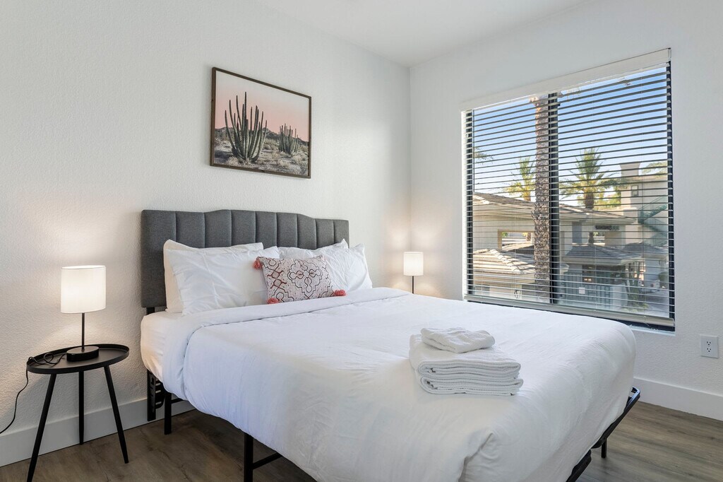 The advertised rate of $3,540/month is the lowest available price, based on a 30 day(s) stay with a move-in date of July 4, 2026. Rates vary depending on the duration of stay, season, and other parameters. For exact pricing and additional pricing components, please visit our website and enter your desired move-in and move-out dates. The rate is applicable when billed upfront; it can be higher if billed in multiple payments. Feel at home in this newly built condo in Scottsdale, steps away from shopping, dining, and entertainment, and overlooking the Westin Kierland Golf Course. Please note that this is a garden-style unit that requires one to two floors of stairs. This condo is suitable for a family, group of friends, or business travelers, and has all the amenities necessary to enjoy your stay. It features quartz countertops, stainless steel appliances, a fully equipped kitchen, 100mbps+ internet, modern decor, a Smart-TV with streaming apps installed, and a washer/dryer. Complimentary coffee is provided. Enjoy access to the luxury fitness center, pool with spa cabanas and fire pits, Jacuzzi, and lounge and game room with pool table. A stylishly appointed business lounge is also available. Pool access is subject to season and weather. Pets are welcome with a fee of $100-300 based on stay length. All pets must be on a leash when outside on the property. Located in Kierland Commons, this condo is close to world-class golf courses, hiking trails, spas, and more. You and your guests can enjoy the best of Scottsdale, then return for a meal cooked in the fully equipped kitchen and take a dip in the Jacuzzi. The condo is ideally located close to different attractions and is a short drive away from everything, even walkable to Kierland Commons. Smoking of any kind is not permitted within or outside of the condo, including balconies, patios, or common and/or parking areas. Any sign of smoking is a violation of the stay agreement, which may result in immediate termination and recovery fees beginning at $500. There is a $500 penalty for removing smoke detectors and a $200 penalty for lost key fobs. No outside guests are allowed without permission. Quiet hours are observed from 9pm-8am each day. Guests must agree not to disturb neighbors at all times during the stay. No weapons or drugs are allowed. A pet fee may be charged for guests traveling with an emotional support animal. To abide by all legal requirements and HOA rules, you will be asked to provide a copy of your official government-issued photo ID, confirm your contact information, and pass through our verification portal. Minimum age requirement of primary person booking should be 22 years old. Check-in is at 4 PM and check-out is at 11 AM, with a $75/hr late fee. [SI]