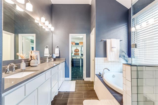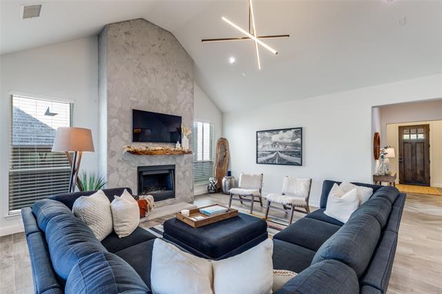 Elegant Prosper Home in Artesia North! Stunning 3-bedroom, 2-bath home featuring high vaulted ceilings, designer lighting, and beautiful flooring throughout an open, light-filled layout. The chef’s kitchen impresses with quartz countertops, KitchenAid stainless-steel appliances, and a 6-burner gas range. The spacious living and dining areas flow seamlessly to a covered patio and pergola that are perfect for entertaining. Luxurious primary suite offers a soaking tub, oversized frameless shower, dual vanities, and a huge walk-in closet. Enjoy a landscaped backyard retreat with negotiable patio furniture and fire pit. Additional features include an EV charger, washer, dryer, refrigerator, and a two-car garage. Located in Prosper ISD with access to Artesia North’s resort-style amenities: pools, fitness center, clubhouse, playgrounds, and walking trails. Option to lease furnished. Convenient to US-380 and Dallas North Tollway!