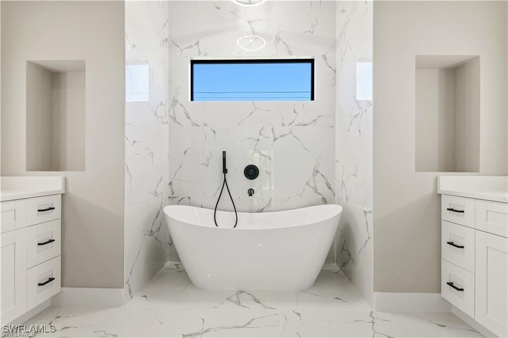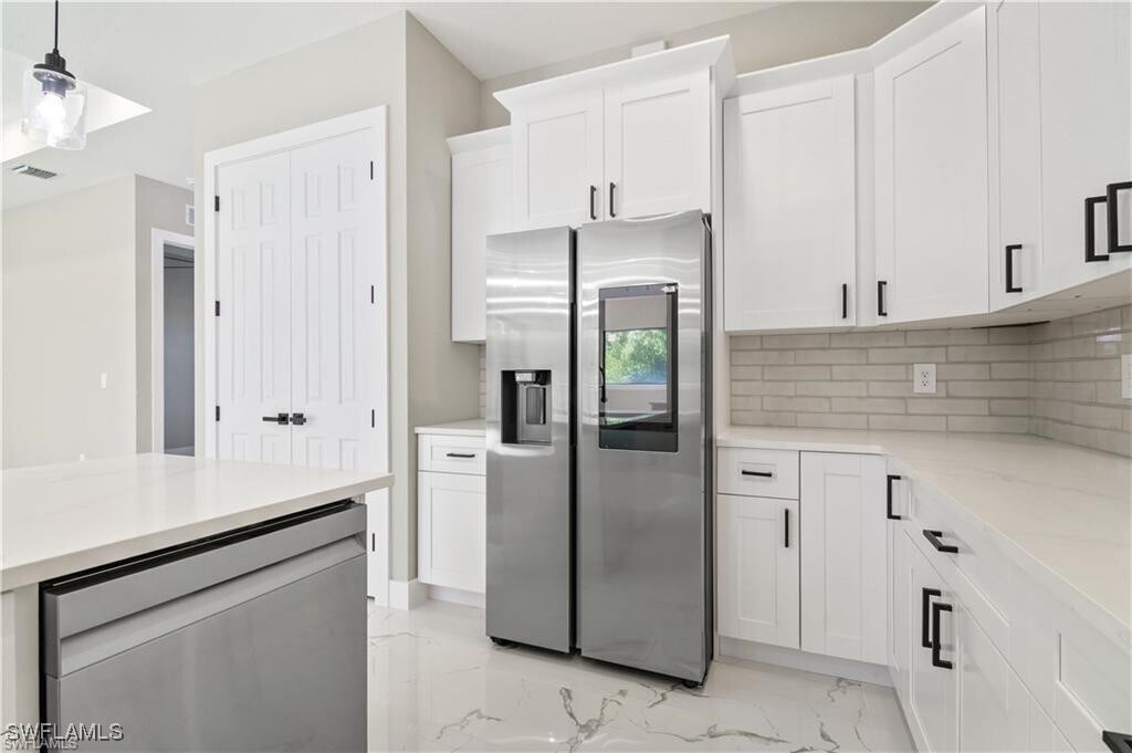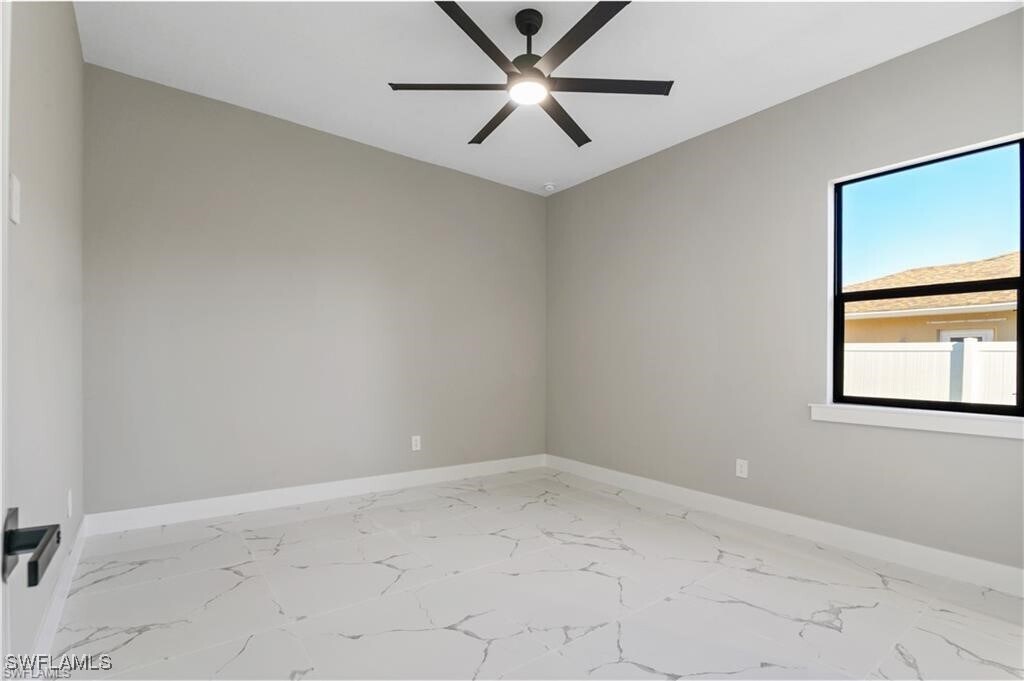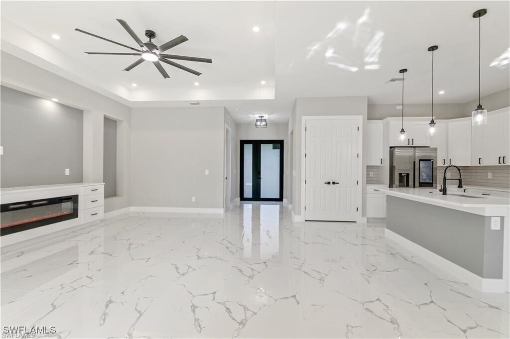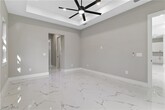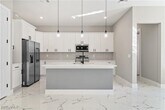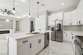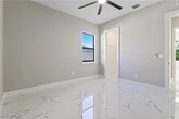 Be the first to live in this stunning brand-new 2025 construction rental in desirable NW Cape Coral. This 3-bedroom plus den,2-bath home is perfectly situated on a quiet cul-de-sac with peaceful golf course views and no rear neighbors. Inside,enjoy tile flooring throughout,soaring ceilings,and an open-concept layout filled with natural light. The designer kitchen features quartz countertops,upgraded appliances,a chef’s sink,tiled backsplash,pantry,and a wet bar with wine fridge—perfect for entertaining. The spacious primary suite offers dual vanities,a soaker tub,tiled walk-in shower with glass enclosure,and two walk-in closets. Additional highlights include a 3-car garage,paver driveway and lanai,hurricane-impact windows and doors,soffit and recessed lighting,electric fireplace with custom accent wall,tankless water heater,and in-residence laundry. The private den with glass doors is ideal for a home office or flex space. Located in a quiet,upscale neighborhood,this home truly checks all the boxes for comfort,style,and location. Schedule your private showing today.