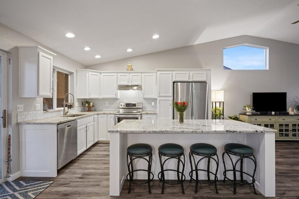 The open floor plan features a spacious great room, formal dining area/flex room, 3 bedrooms & 2 full baths. The remodeled kitchen boasts granite countertops & stainless appliances, plus an island/breakfast bar, and the dream pantry! Master suite includes dual sinks in the master bath & a walk-in closet. New quartz counters in the master bath, granite counters in the guest bath, and a walk-in closet in one of the guest bedrooms! Additional features include vaulted ceilings, A/C, stylish shiplap accents, new laminate wood flooring, and a little hidden storage cubby above the fireplace! Situated on 0.19 acres, fully fenced & landscaped, with an attached 2car garage and lots of driveway space for parking. The backyard has it all, with a covered deck, garden beds, 2 sheds, AND space for an RV. Great location close to parks, schools, and shopping, easy access to the parkway, and access to the Dry Canyon trail is at the end of the street! Please visit for more details and to apply. All rental listings and availability are subject to change without notification. All information is deemed reliable, but not guaranteed. We are unable to show properties without an approved application. We offer virtual tours on our direct website when available. Showings of homes once your application has been approved can usually be arranged.