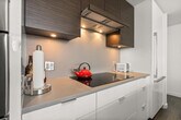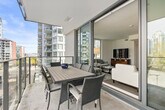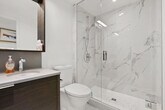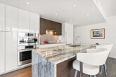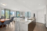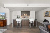 Experience contemporary comfort and feel at home in this bright 2-bedroom apartment in Vancouver’s Olympic Village. This suite also includes elevator access. This spacious 1,200 sq ft open-concept layout features floor-to-ceiling windows, a fully equipped kitchen stocked with cooking essentials, comfortable dining and living areas designed for relaxation or gathering, and two modern full bathrooms with quality finishes. Enjoy unobstructed False Creek and Seawall views with plenty of natural light from the large balcony with outdoor seating. For everyday convenience, there is an in-suite washer and dryer. One dedicated underground parking spot is included. Located in Olympic Village on Pullman Porter Street, this waterfront community is one of Vancouver’s most desirable areas. Step outside to the Seawall, explore Science World, or stroll to Main Street for coffee shops, breweries, and restaurants. Granville Island and Downtown Vancouver are just a few minutes away by SkyTrain or car, offering endless options for dining, shopping, and sightseeing. This area is extremely walkable and well-connected. The Olympic Village SkyTrain Station is about a 10-minute walk, with direct service to downtown and the airport. The False Creek Ferry is also nearby for a scenic ride to Yaletown or Granville Island. Bike paths, car share options, and bus routes are easily accessible. Both bedrooms feature queen beds and plush linens, located on opposite sides for added privacy. [SI]