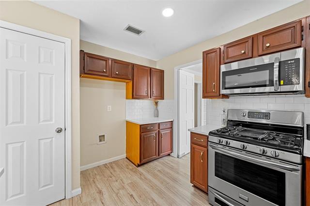 Corner lot with good sized backyard with pool. Get in just in time to enjoy the pool for the sunny summer days. Close to Flower Mound schools. 4 bedrooms, 2 and a half baths. The downstairs has 2 living areas and 2 eating areas, ready for entertaining and pool time. Concrete pad in backyard off driveway, could be used for boat parking.