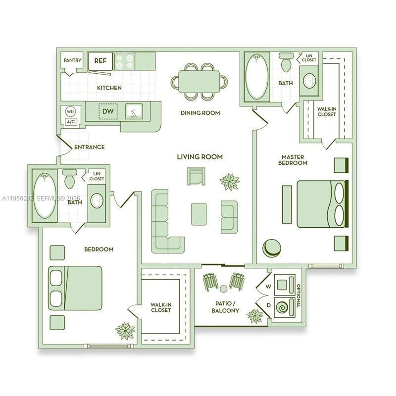 Ready to Move In! Spacious and modern 2 Bed/2 Bath condo with a desirable split floor plan in a building with only 4 units per floor. Features include an open living and dining area, laminated wood flooring, high ceilings, and a contemporary kitchen with granite countertops, quality cabinetry, and stainless steel appliances. Upgraded bathrooms with granite tops. Full-size washer and dryer inside the unit. Enjoy a screened balcony with views of the gardens and pool. Large primary bedroom with a walk-in closet. Community offers resort-style amenities including one assigned parking plus guest parking available, BBQ/picnic areas, beach volleyball, business center, clubhouse, controlled access/gated entry, fitness center with free weights, on-site management and maintenance, recycling, sundeck, and walking/jogging trails. Conveniently located near shopping, dining, excellent schools, parks, The Hammocks, Baptist West Hospital, and Tamiami Airport. Available March 01, 2026 MLS # A11956032