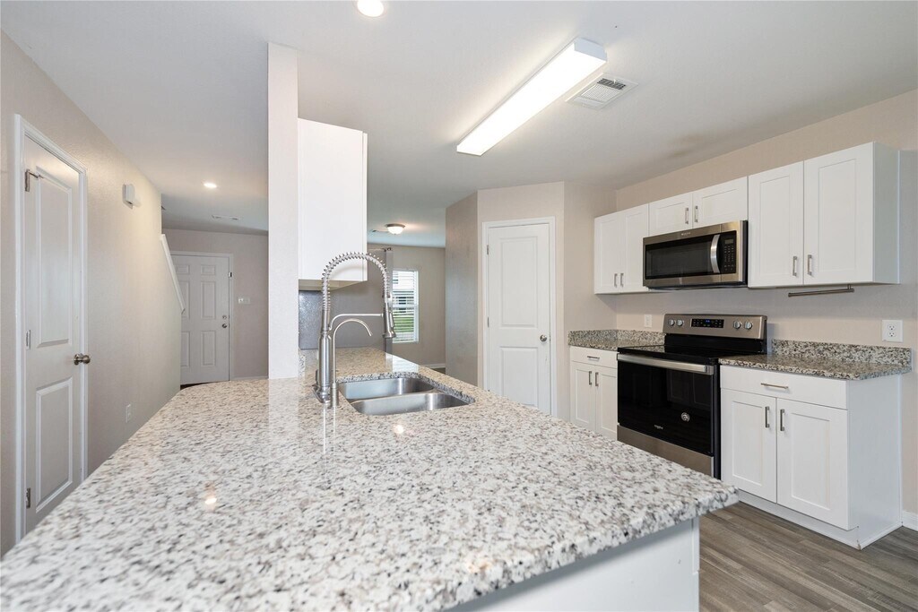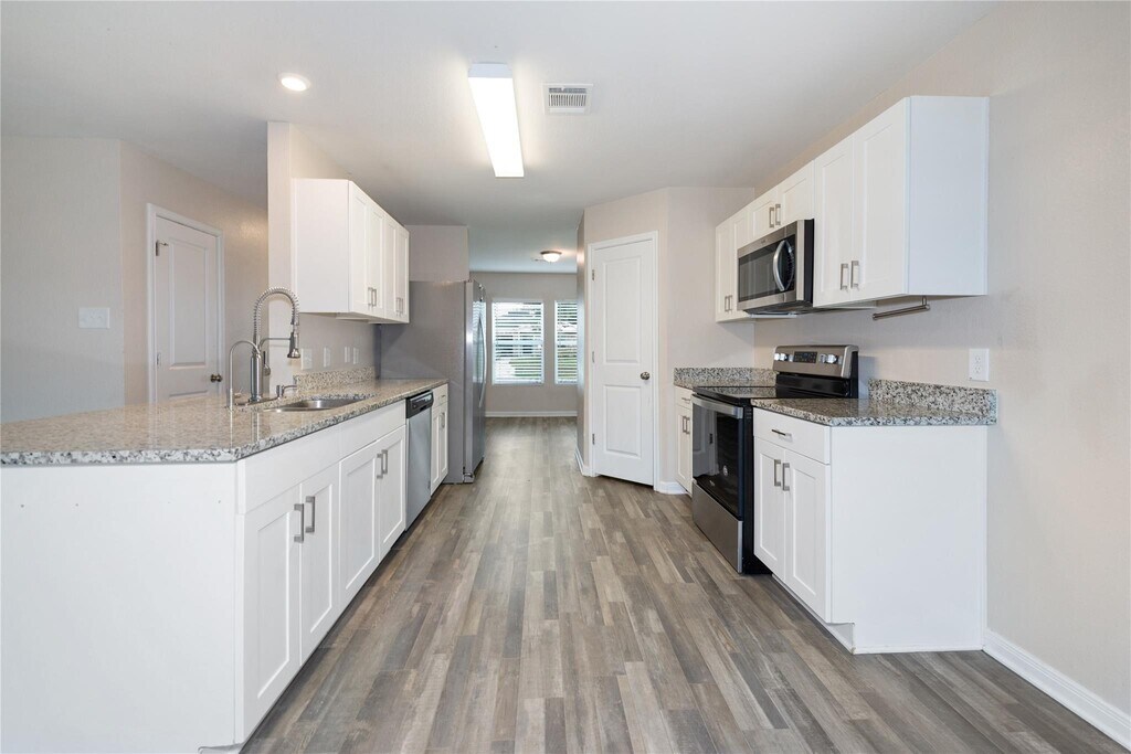 Stop the car! Come see this great 5 bedrm/3 bath home with beautiful vinyl floors! Nice flex room downstairs can be a Study,Playroom or formal Dining Room. The Kitchen,sure to please the chef in your life,is open to the breakfast area and Family Room and boasts sparkling white cabinets,granite countertops,a stainless Steel refrigerator and a water filtration system with a reverse osmosis spigot. A downstairs Bedroom perfect for visiting guests with a convenient full bath right across the hall! Patio with a big fenced back yard. Come see it today! MLS# 54003273